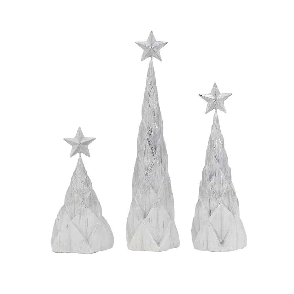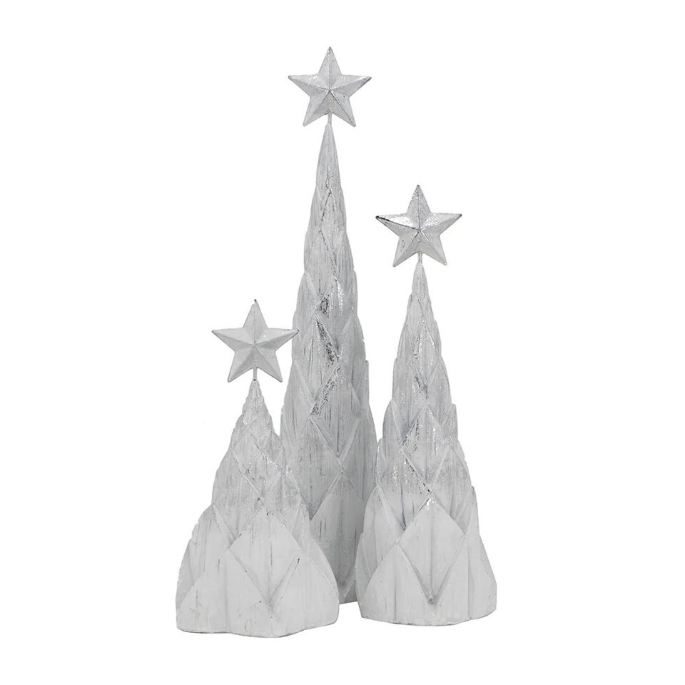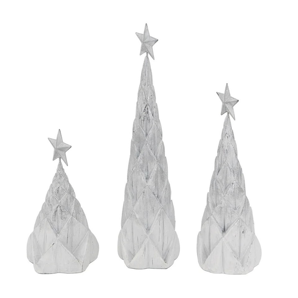 Set of 3 Resin White/Silver Foil Christmas Trees with Star Top