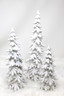 Gorgeous examples of modern winter decor, the three white trees in this set have a gleaming silver foil finish and festive star toppers