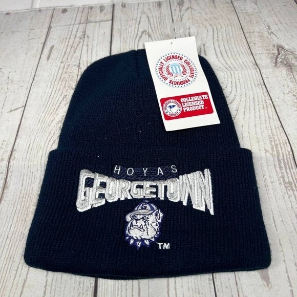 Vintage Cuffed Georgetown Hoyas NCAA Hat Beanie Cap Navy Blue New Men