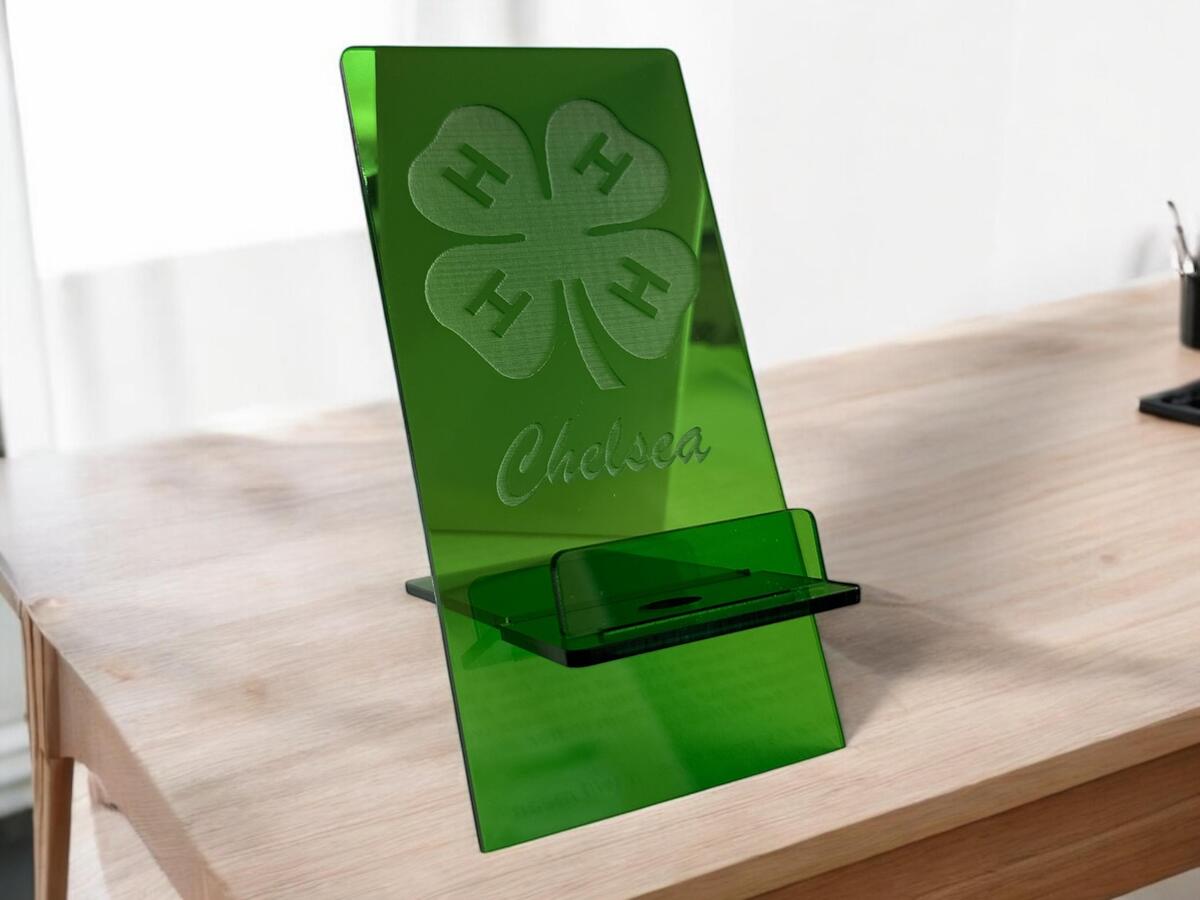 Customize your own desktop cell phone stand. Many vibrant colors. You can customize with any saying, image, or logo.