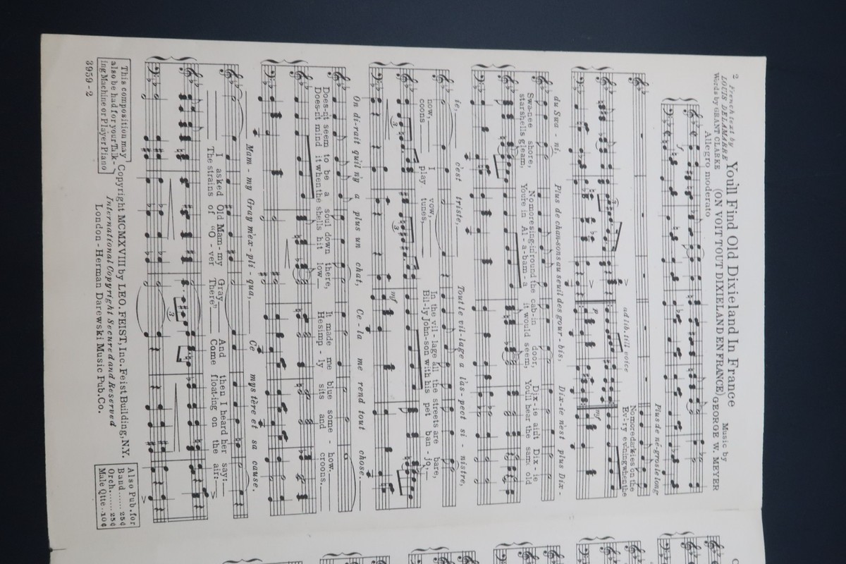 1918 WW1 Ragtime War Edition YOULL FIND OLD DIXIELAND IN FRANCE Ziegfeld