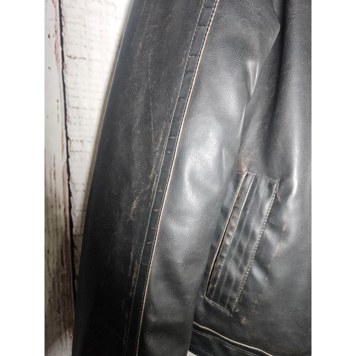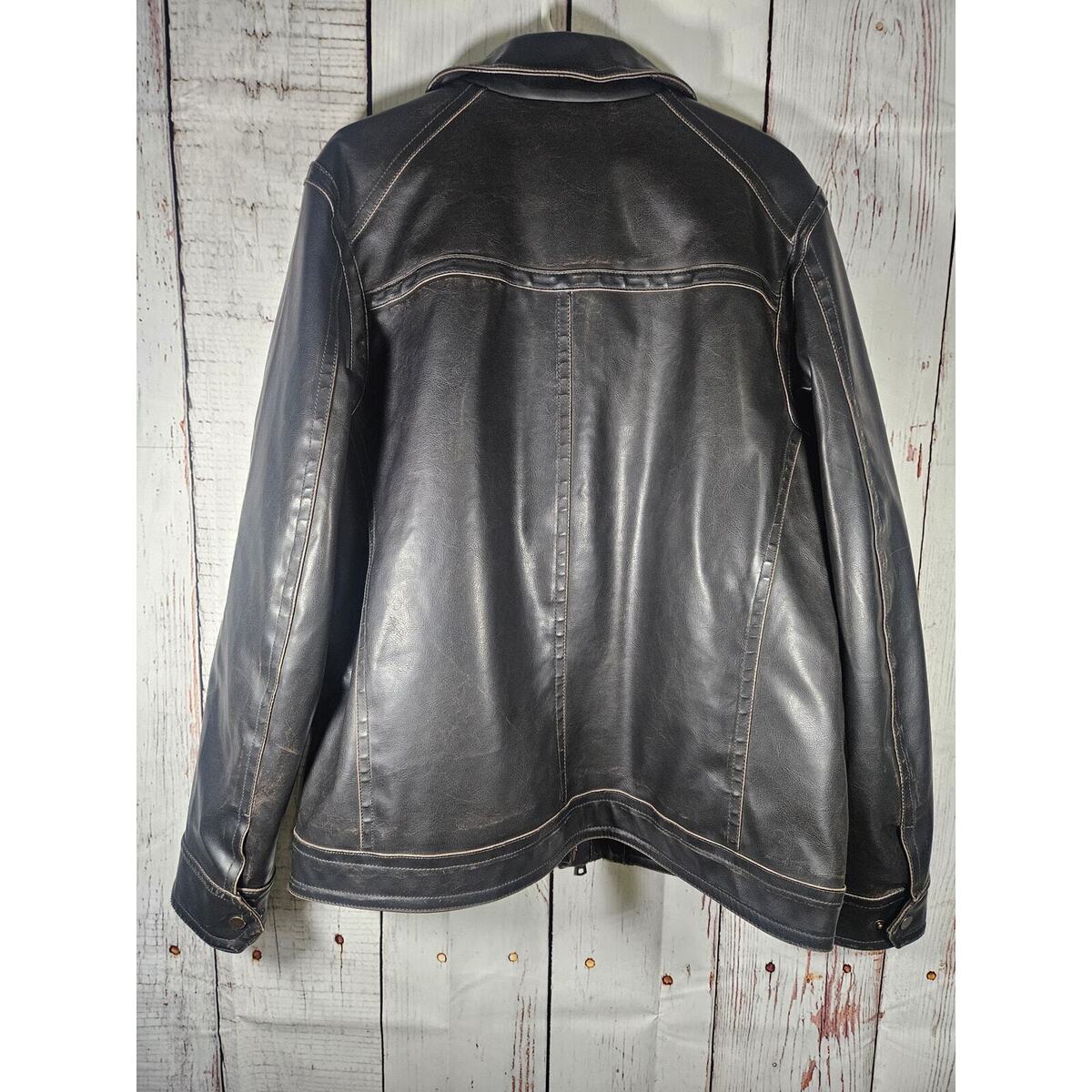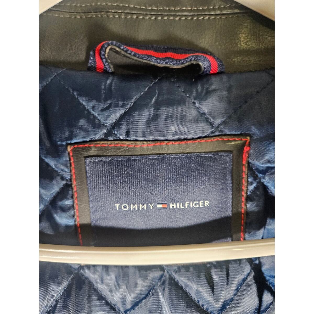 Tommy Hilfiger Mens Brownish Black Leather Jacket Size Large