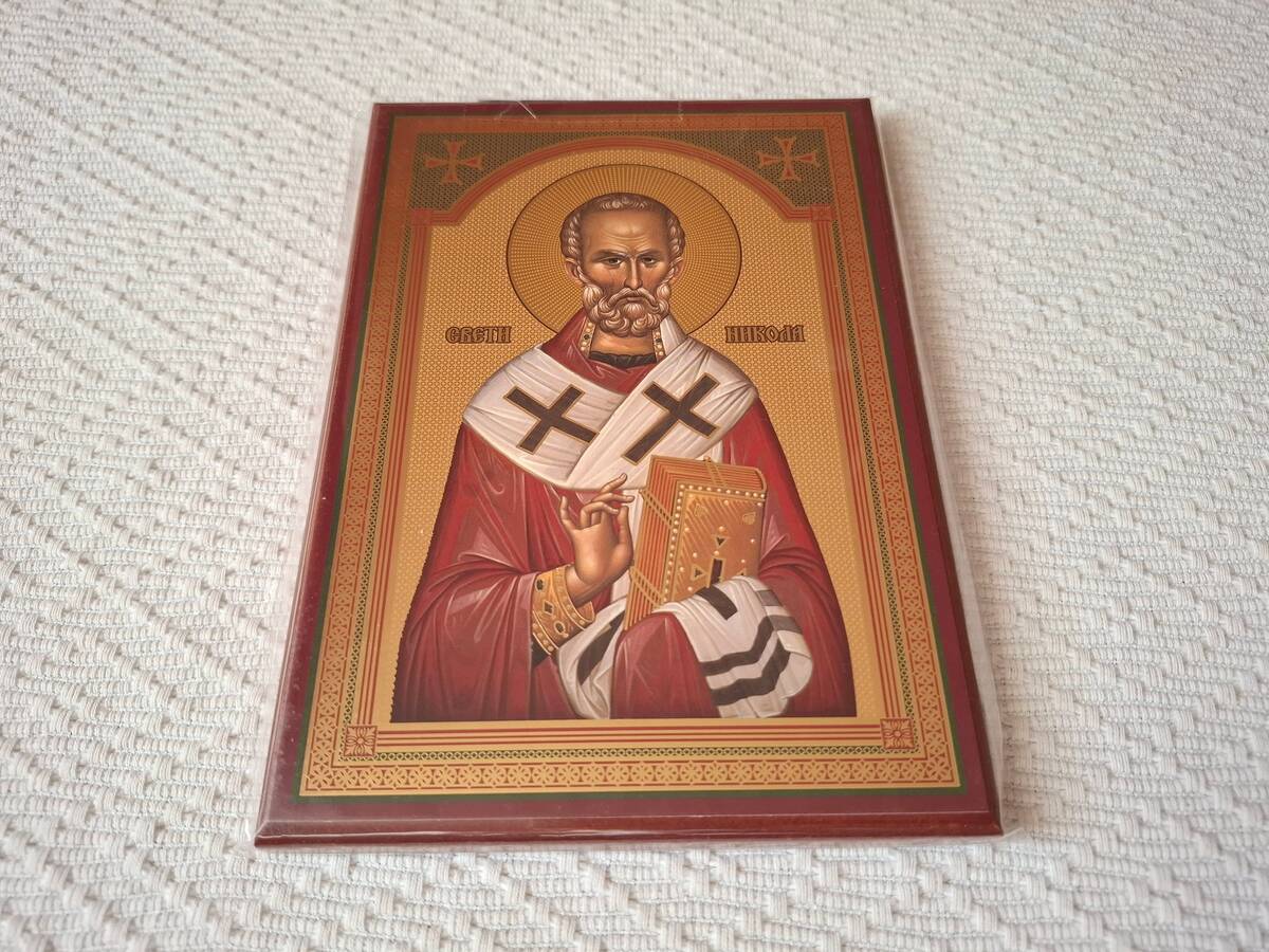 Handmade Serbian Orthodox Icon of St Nicolas (18cm x 13cm)