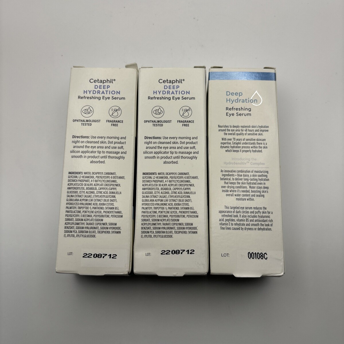 3PK Cetaphil Deep Hydration 0.5oz Refreshing Eye Serum NEW! PACKAGING VARIES