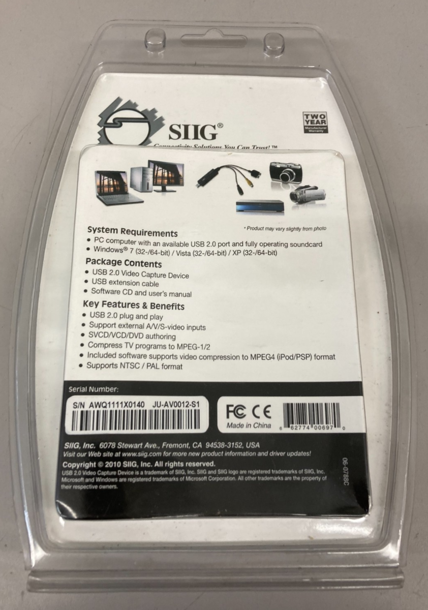SIIG USB 2.0 Video Capture Device - Capture VHS and Record to DVD JU-AV0012-S1