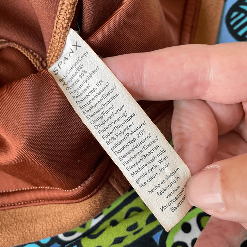 Spanx camel or a caramel tan color, sueded fabric leggings. Some this fabric moleskin. interior is lined with a slippery fabric for easy on off. Laying flat measures approximately 15 inches straight across the waist with an 11 inch rise and 29 inch inseam. Polyester and spandex blend.