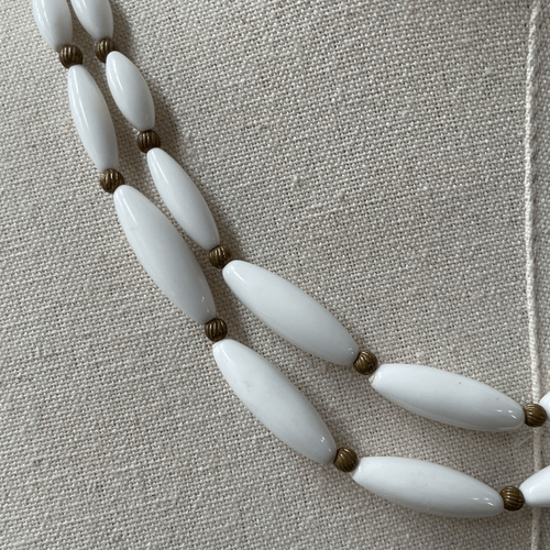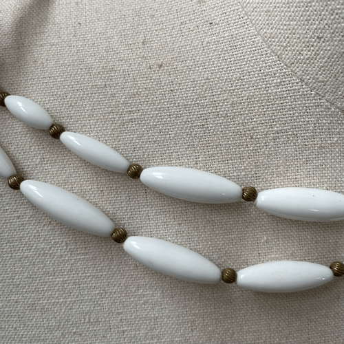 Vintage 50s 60s White Bead Gold Tone Double Strand Becklace