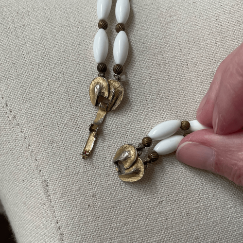 Vintage 50s 60s White Bead Gold Tone Double and 49 similar items