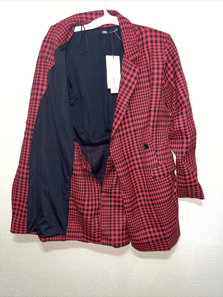 Zara red houndstooth blazer romper sz L NEW and 42 similar items