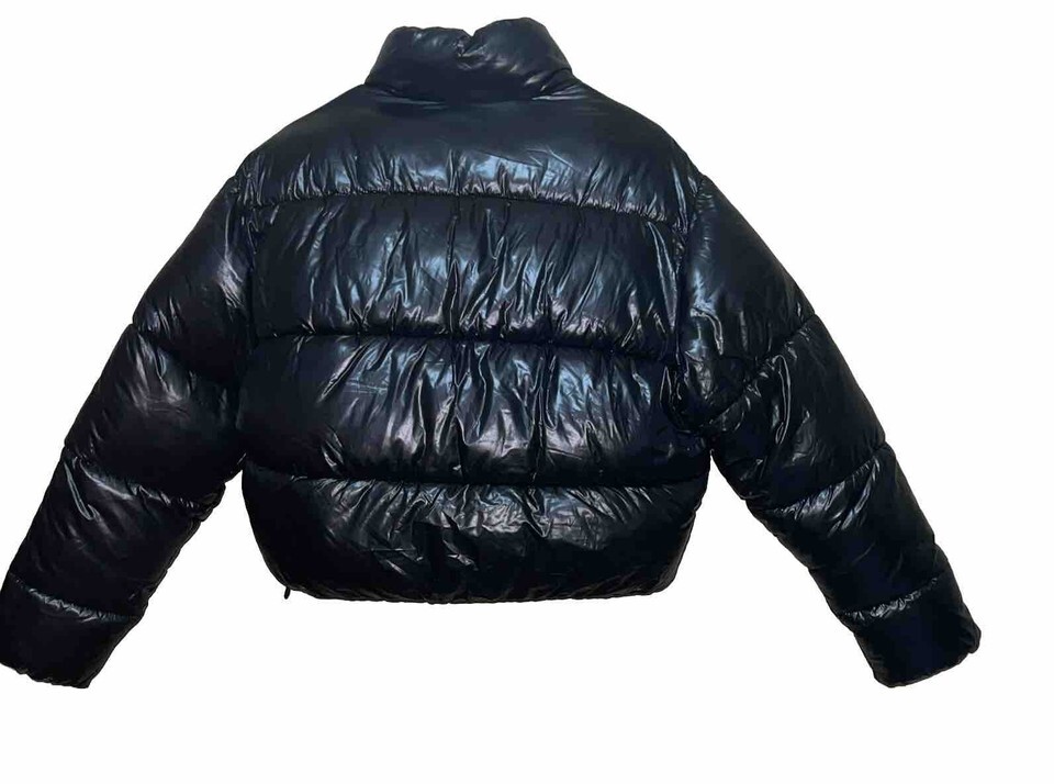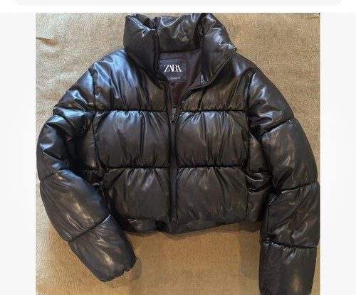 ZARA Down Puffer Jacket Womens S Black Full Zip Quilted Cropped sz L NEW
