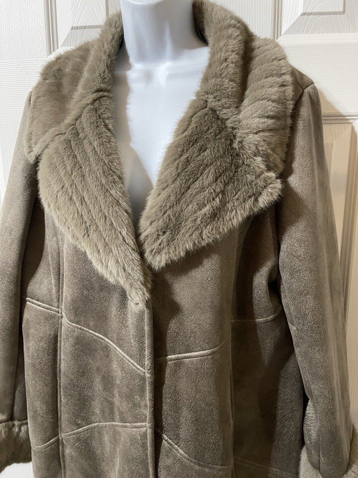 Via Spiga Woman's Notch Collar Coat Beige, Faux Suede and Faux Fur SZ XL NEW