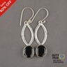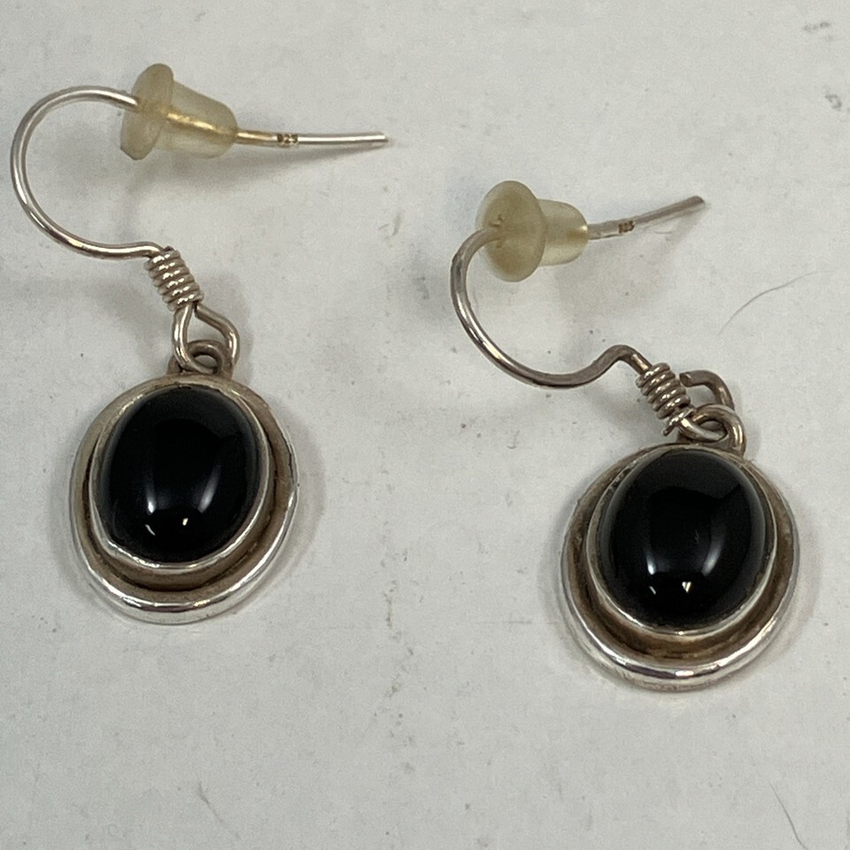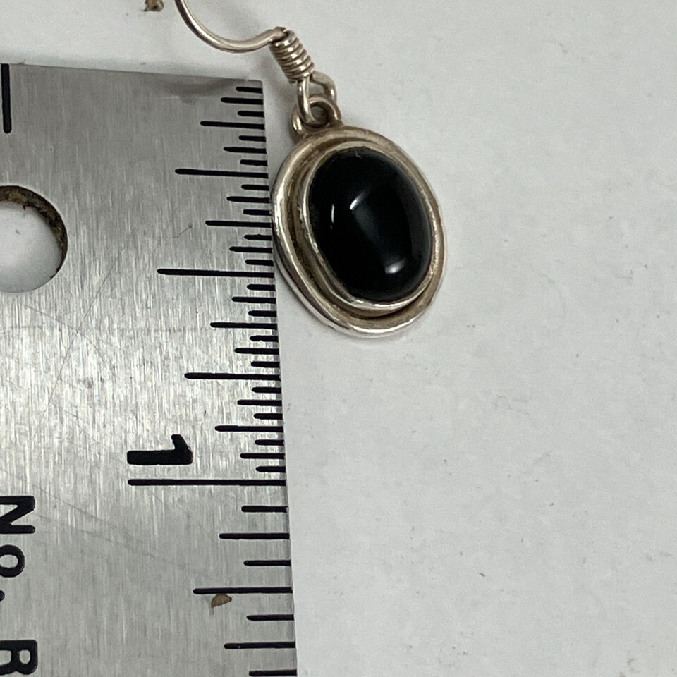 Sterling Silver Black Onyx Cabochon Art Deco Dangle Drop Earrings Marked 925 NAG