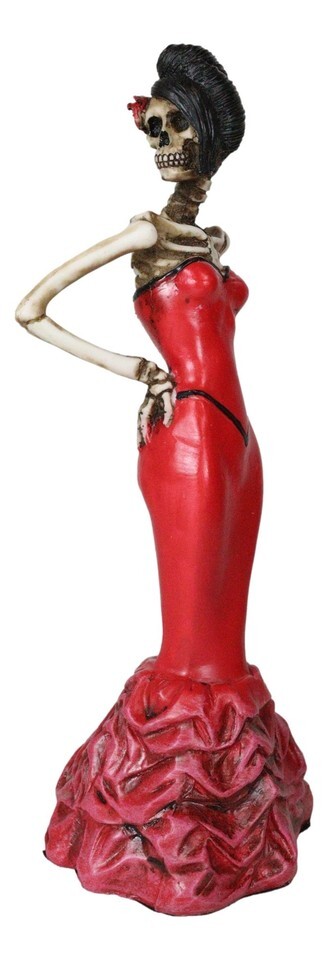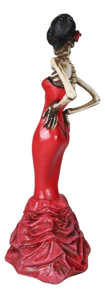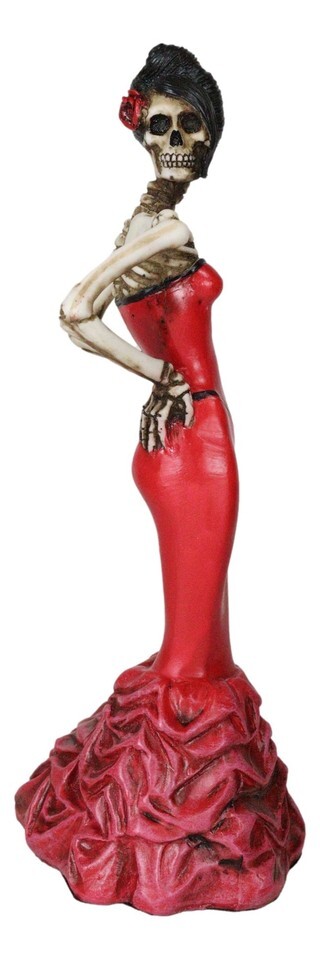 Ebros Day Of The Dead Rose Diva Lady In Red Ballroom Gown Skeleton Statue 8.5"H