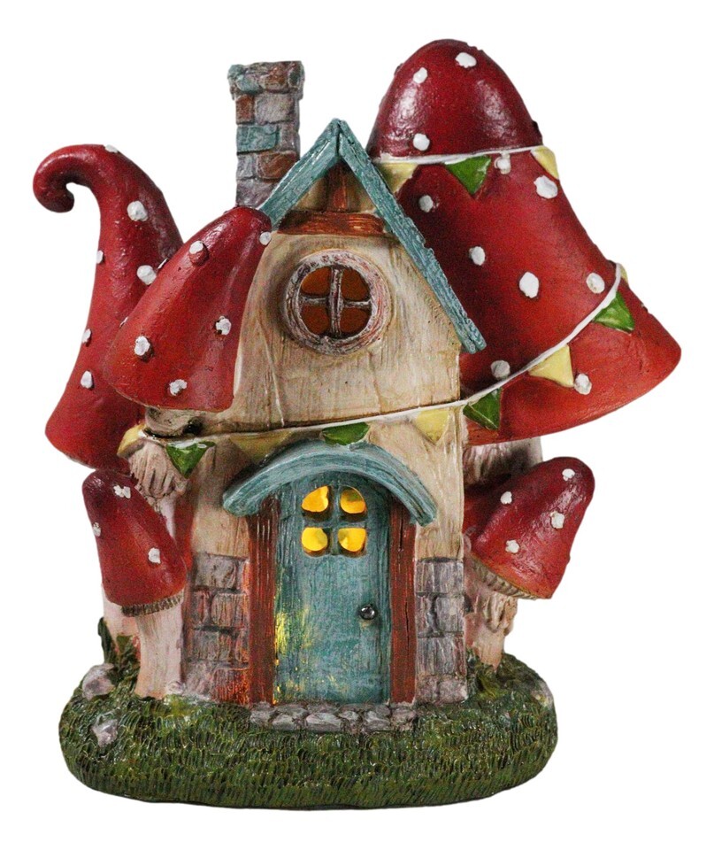 Fantasy LED Light Enchanted Fairy Garden Toadstool Mushrooms Mini Cottage House