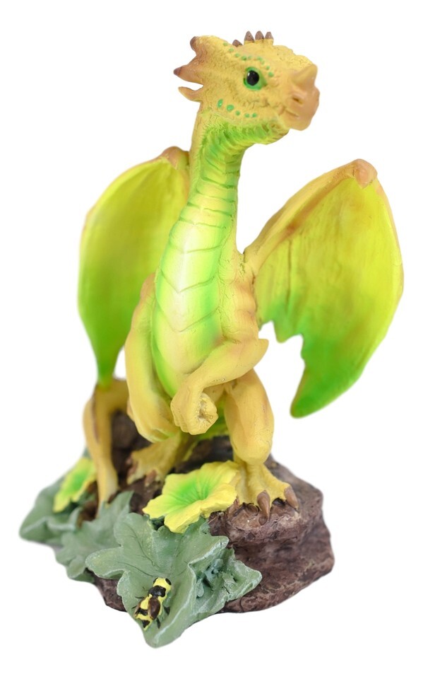 ? Bright and cheerful, this little dragon will reminds you on honeydew melon! The lovely beasty has a bold look on his face, happy yellow hue, fading at some corners to hints of lime green. A little bee friend is seen sits nearby on the leaves of the melon part. Place this little fellow in your desk or shelf to add whim and magic and an all around good vibes.
