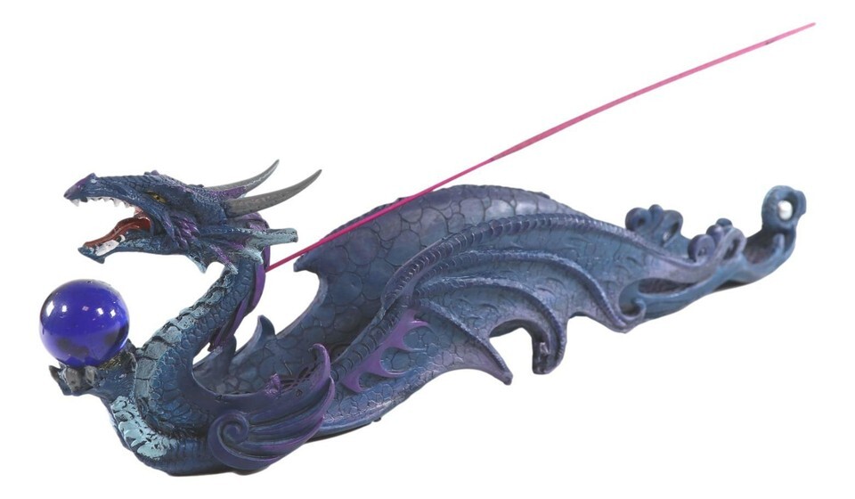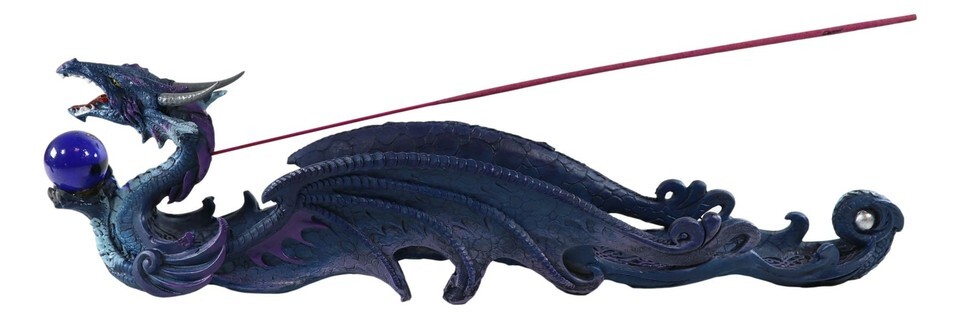 ? This Leviathan blue dragon holds the sphere of the ocean on his hands as he rides over the ocean waves. He will protect your furniture from incense burns and ashes. He will be a centerpiece decor and a great conversation piece or ice breaker for any gatherings.