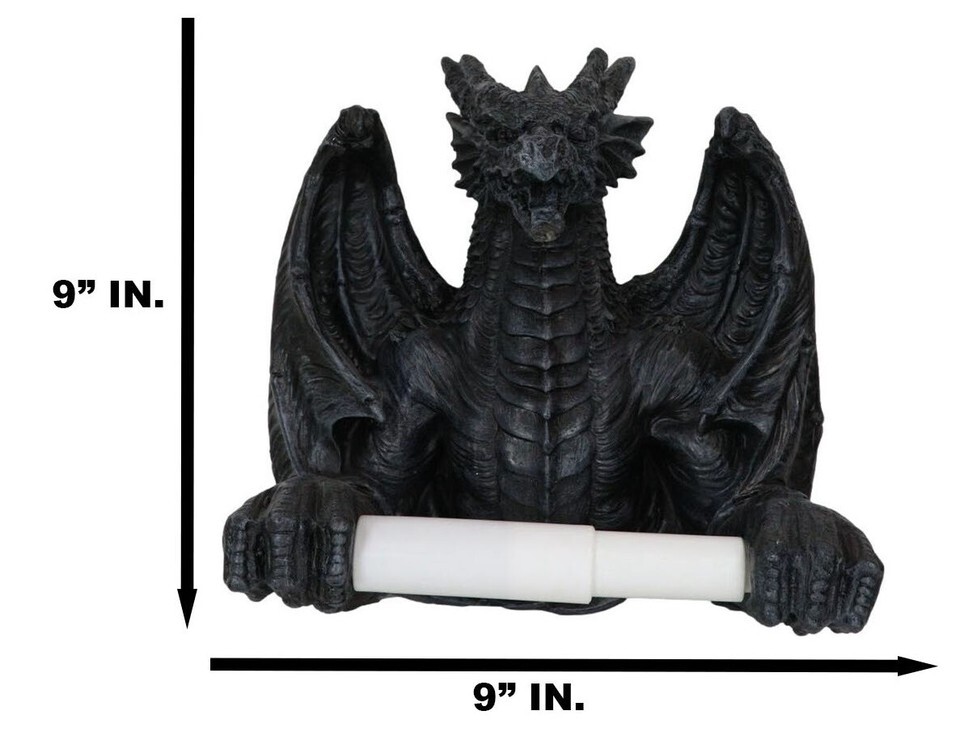 ? Individually hand-crafted from cold cast resin with plastic roller and metal mounting plate. This Dragon wall mounted toilet paper holder is individually hand-crafted from cold cast resin with plastic roller and metal mounting plate. Toilet paper not included. Because our polyresin products are individually hand-crafted, colors may vary slightly from what is pictured here.