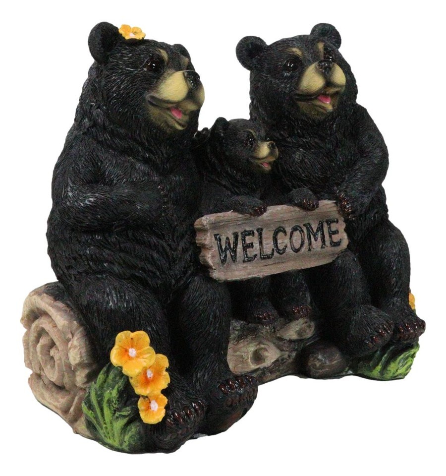 ? Bring the warmth of the forest into your home with this Black Bears and Cub Family Figurine. This heartwarming piece features a loving bear family-Papa and Mama Black Bear sitting together on a log with their adorable cub, all holding a rustic "Welcome" plank. The intricate details capture the gentle nature of the bears and their bond, creating a cozy, inviting atmosphere for any room.