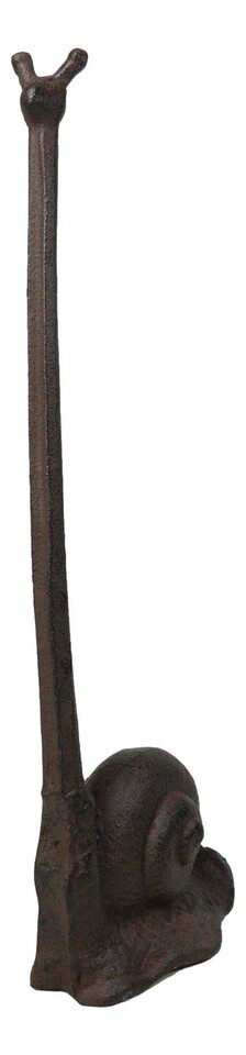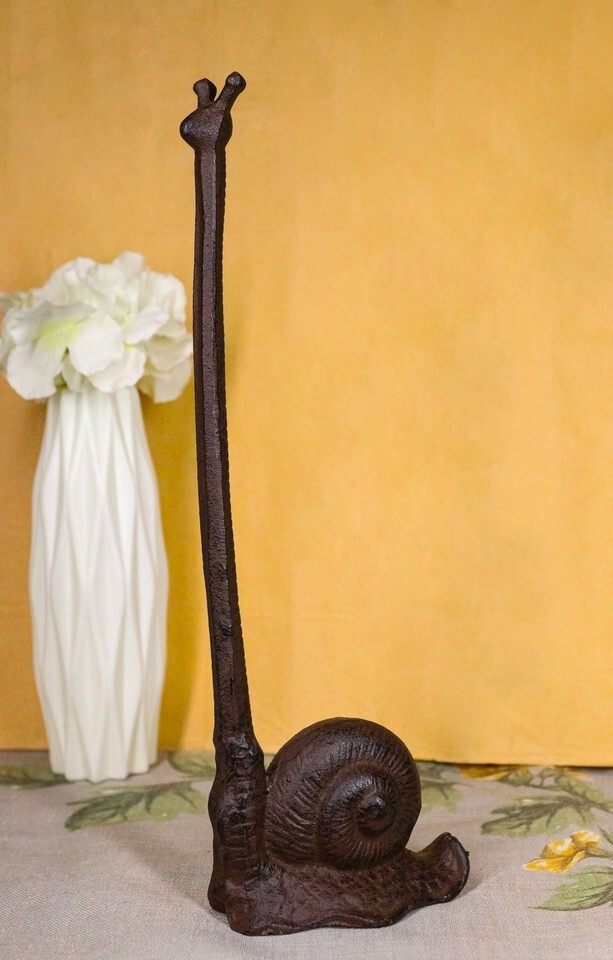 ? Add a whimsical marine touch to your home with this Cast Iron Slug Snail Toilet Paper Holder. Designed with a long neck to conveniently hold rolls, this sturdy cast iron piece doubles as a floor toilet paper holder or decorative accent. Its rustic finish and charming ocean-inspired snail design make it a perfect fit for coastal bathrooms, farmhouse decor, or nautical-themed spaces.