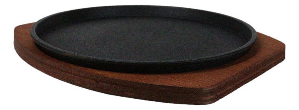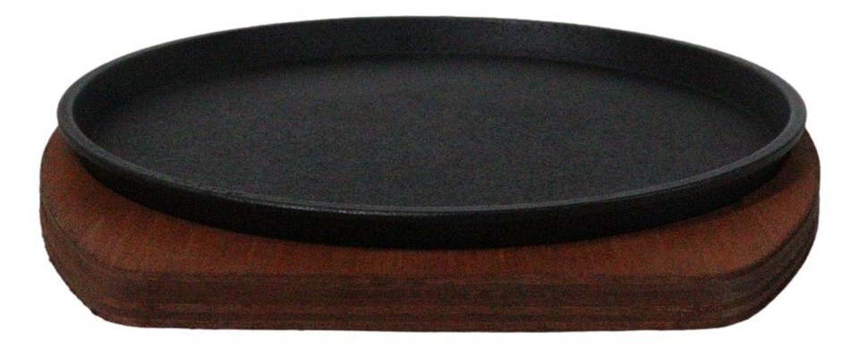 ? This Simple But Elegant Cast Iron Sizzling Plate is your best buddy to cook personal sized meats or vegetables. Cook with the sizzling plate on your stove then remove and put on the wooden base for serving. Serving your cooked food on this sizzling plate adds flavor and style to your secret recipe just like they do it in restaurants!