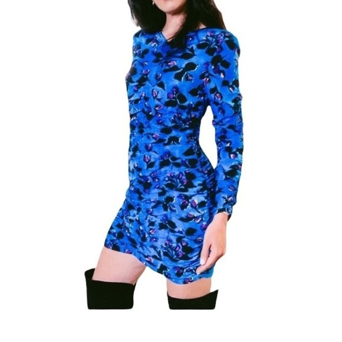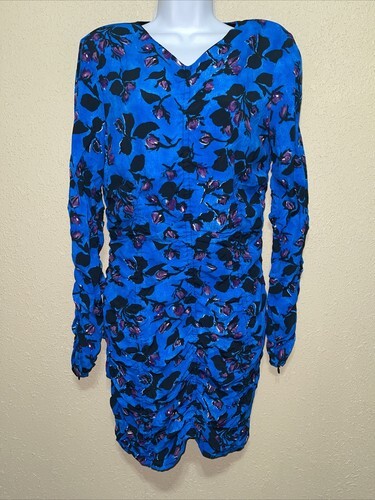 Zara Draped Blue Floral Ruched mini dress SZ and 50 similar items