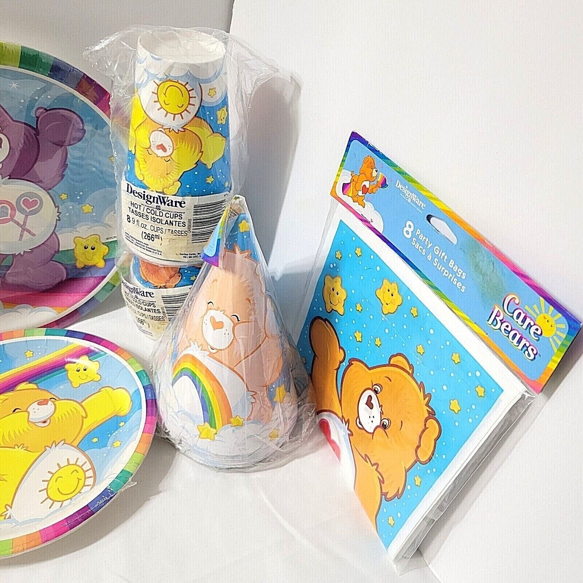 Party Supplies Care Bears Rainbow Colors 2 sz Plates Bags Cups Hats Napkins 2002