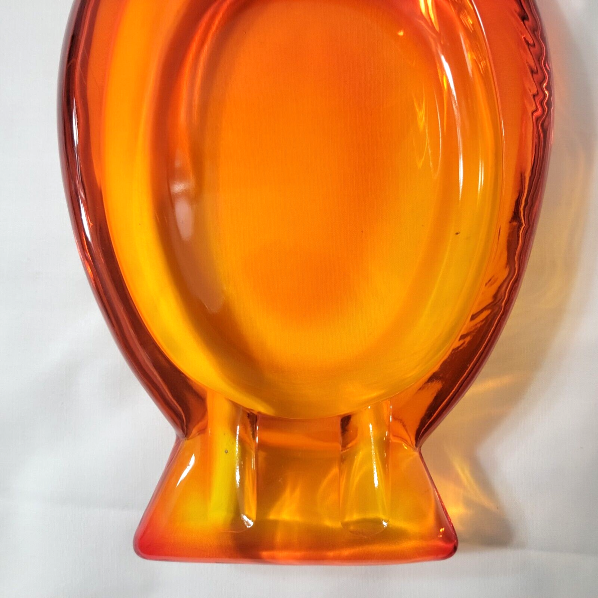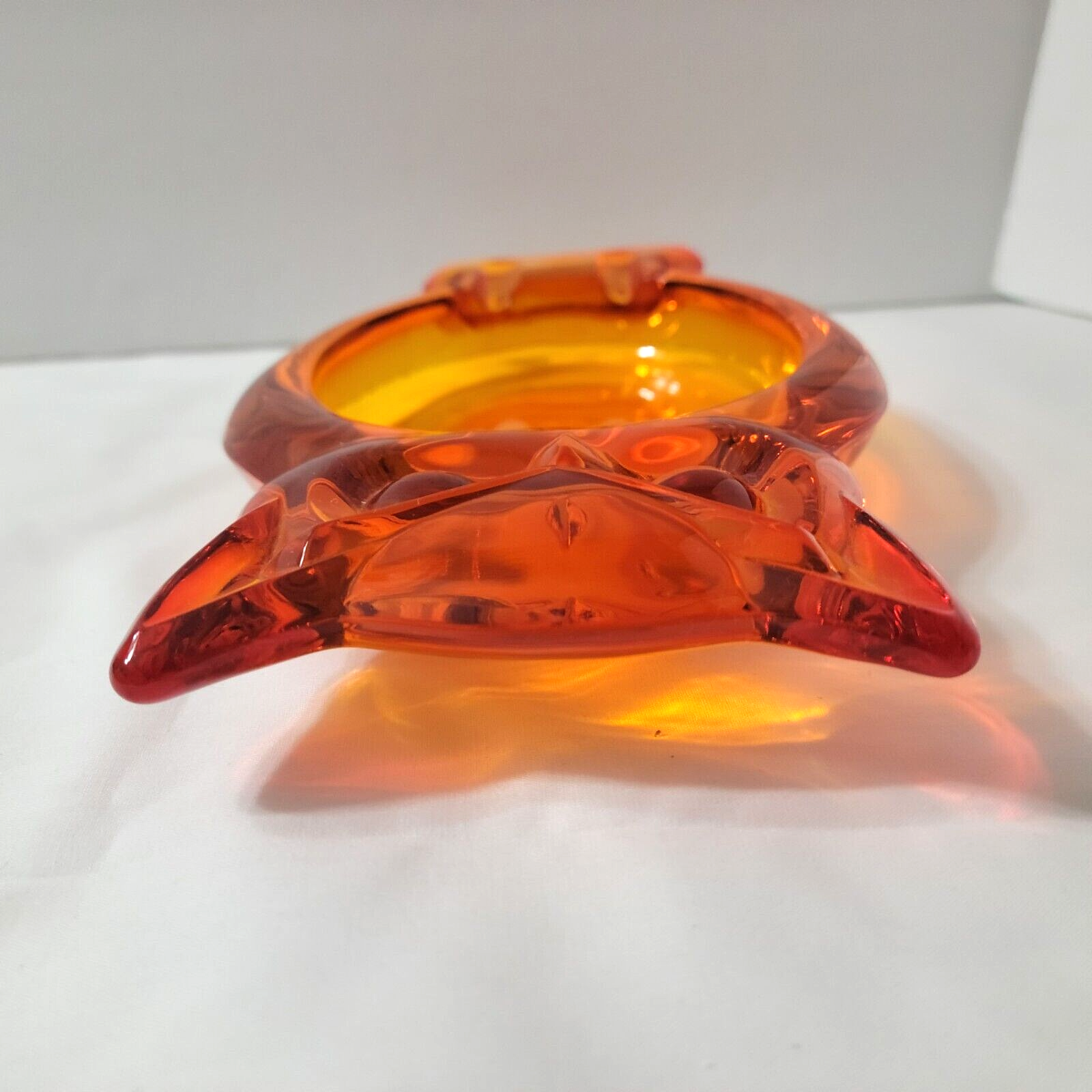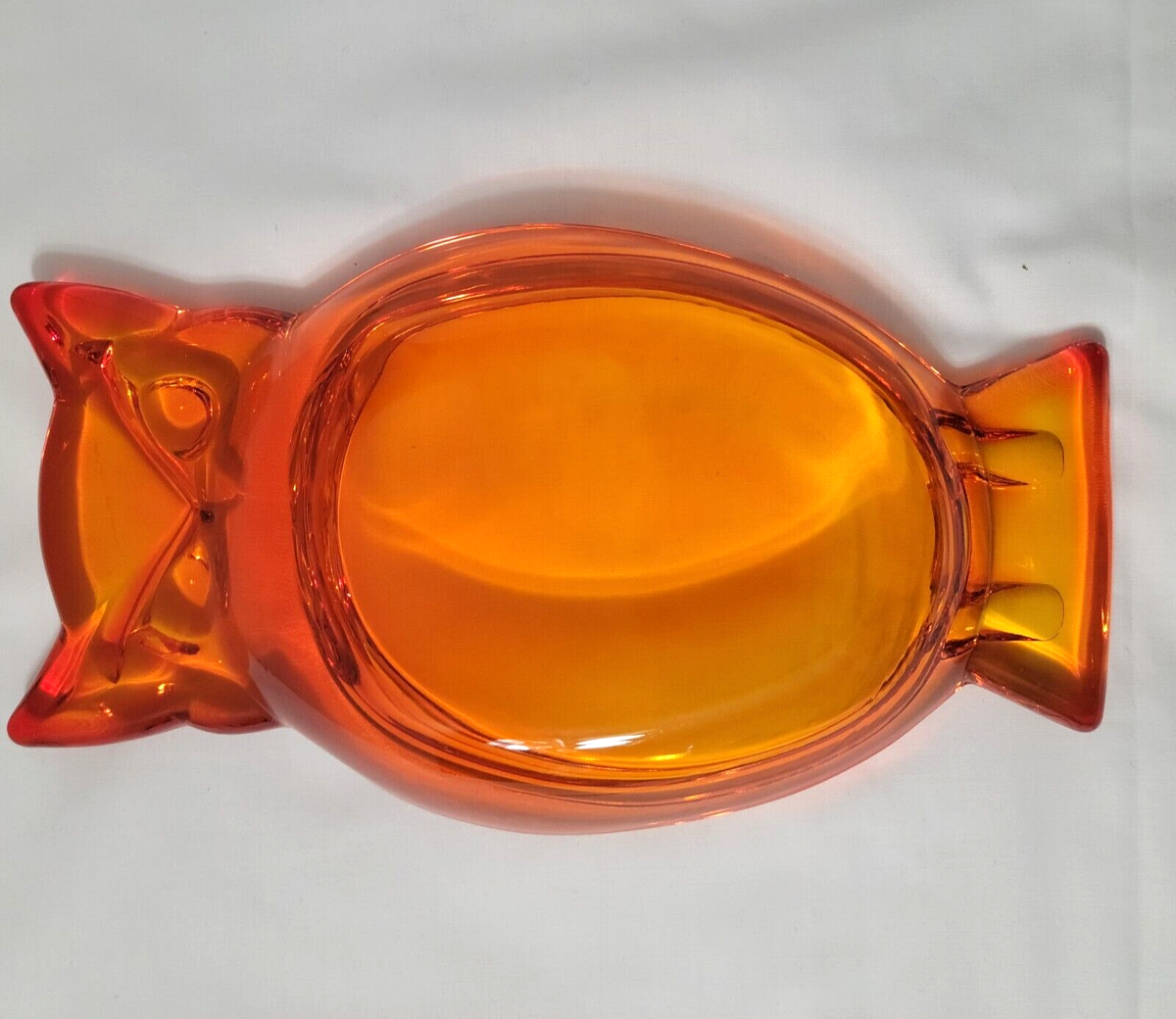 Vintage MCM Retro Viking Glass Orange Owl Art Ashtray Trinket Dish Ash Tray Vtg