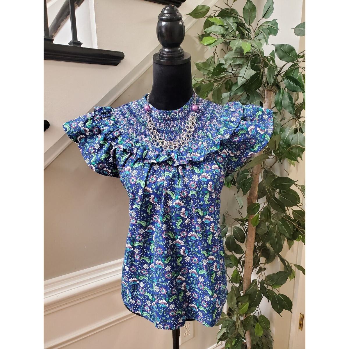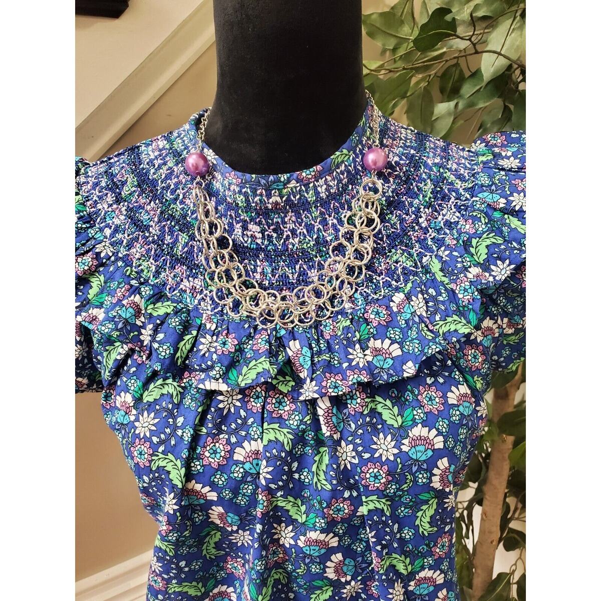 Loft Women's Blue Smocked Ruffle 100% Cotton and similar items