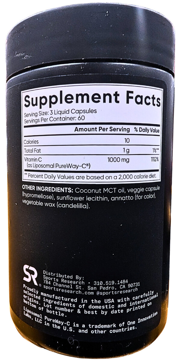 Sports Research Vitamin C Liposomal 1000 mg 180 Veggie Capsules EXP 09/2028