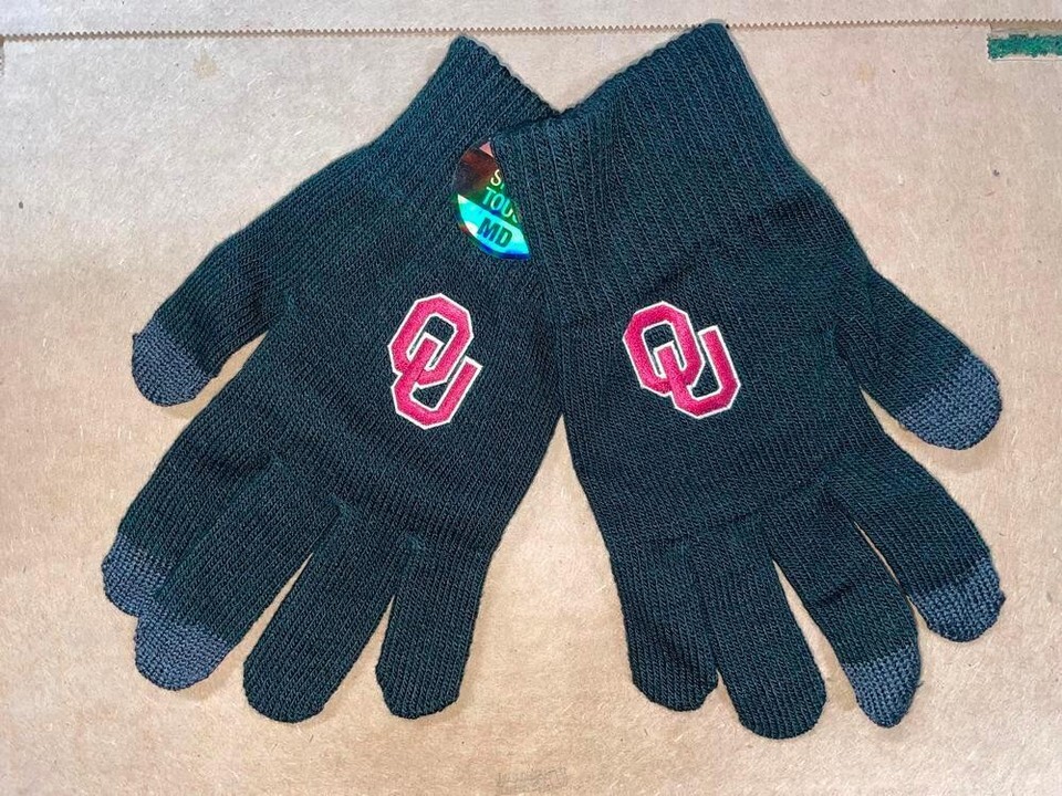 OKLAHOMA Sooners UNIVERSITY BLACK Smart Touch Knitted Gloves MEDIUM