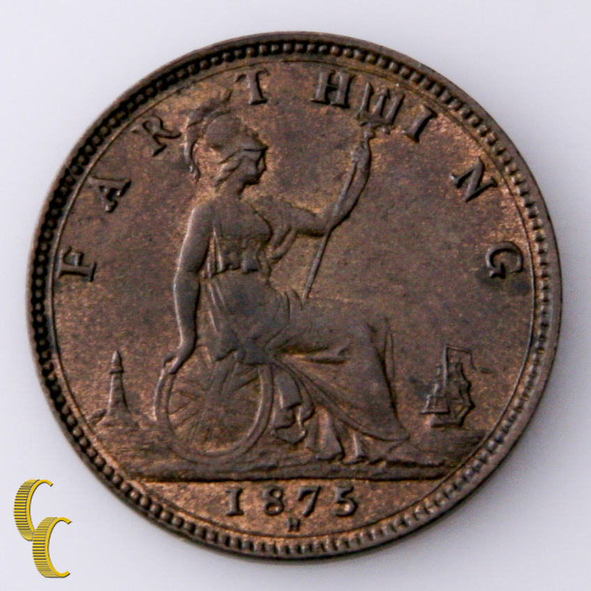 1875-H Great Britain Farthing Coin in UNC, KM# 753