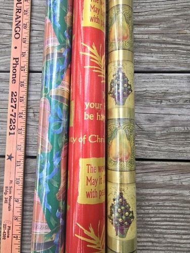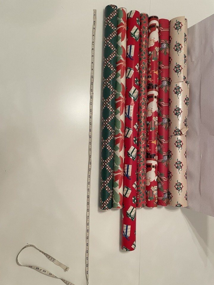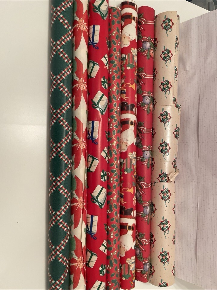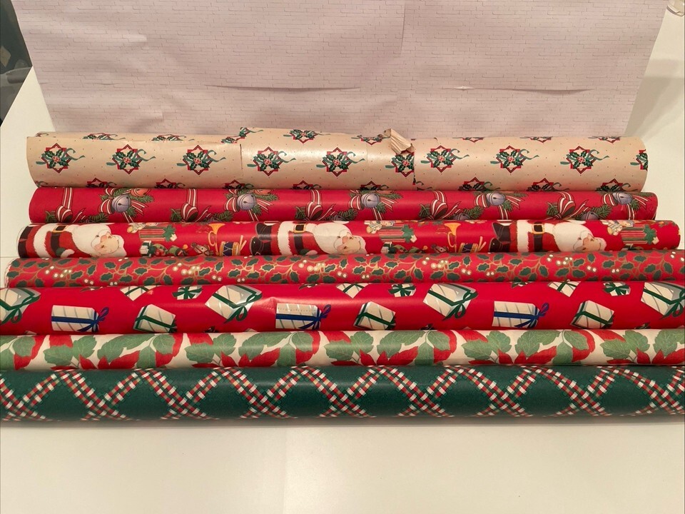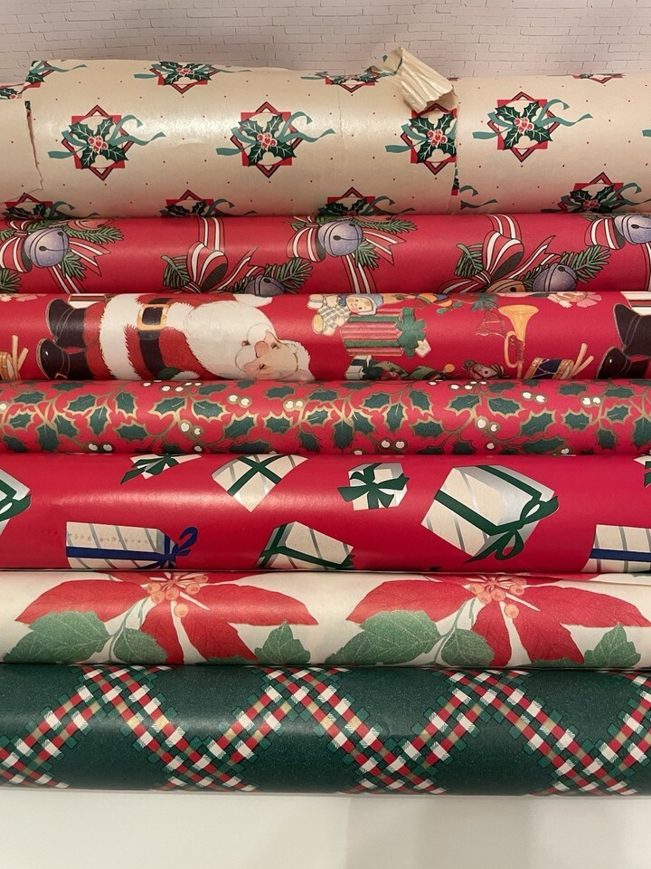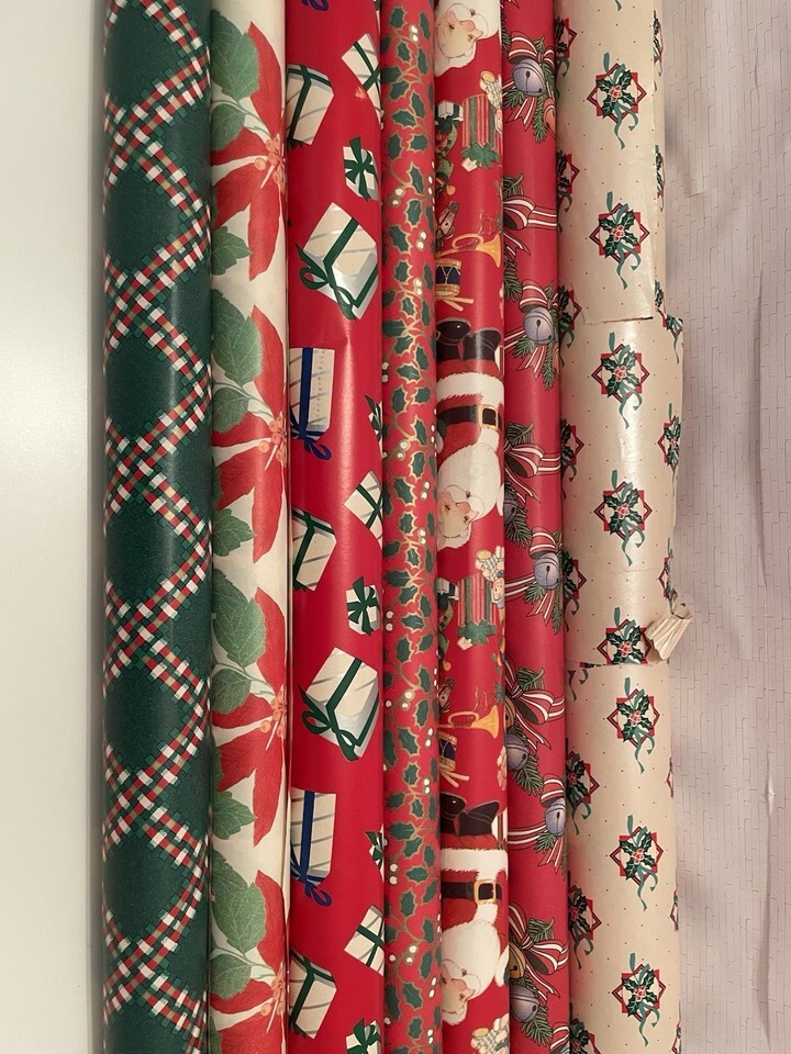 Vintage Christmas Wrapping Paper Bundle 7 Rolls, Used, Various Patterns & Colors