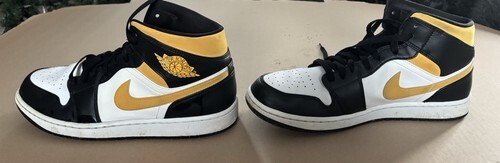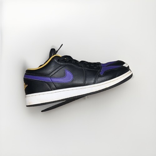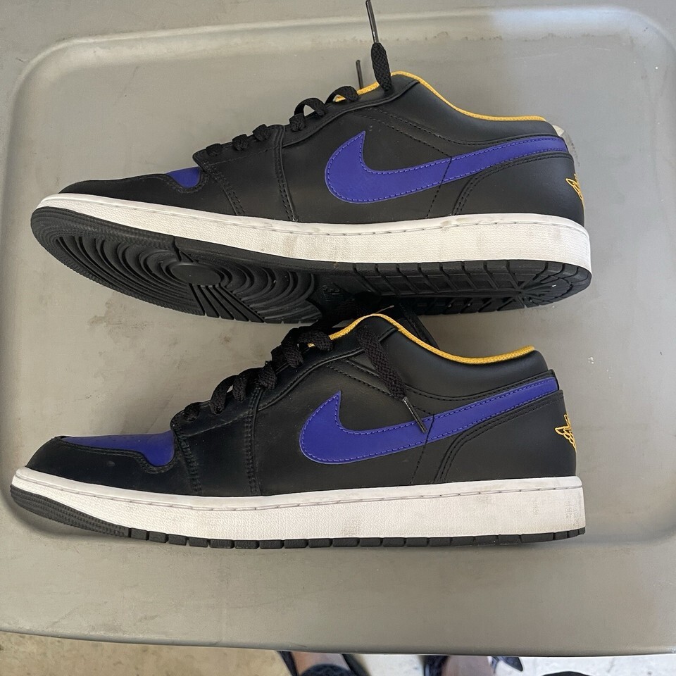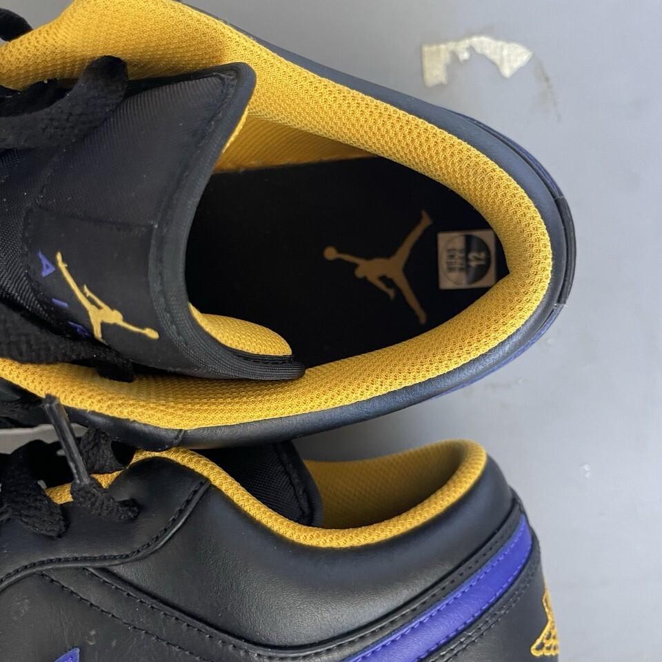 Elevate your sneaker game with the Nike Air Jordan 1 Low "Lakers" in black-dark Concord-taxi size 12. These stylish sneakers feature a low top design and are perfect for basketball performance and activity. The sneaker's silhouette is Jordan 1 Low Black and is made of leather upper material, ensuring both style and comfort.