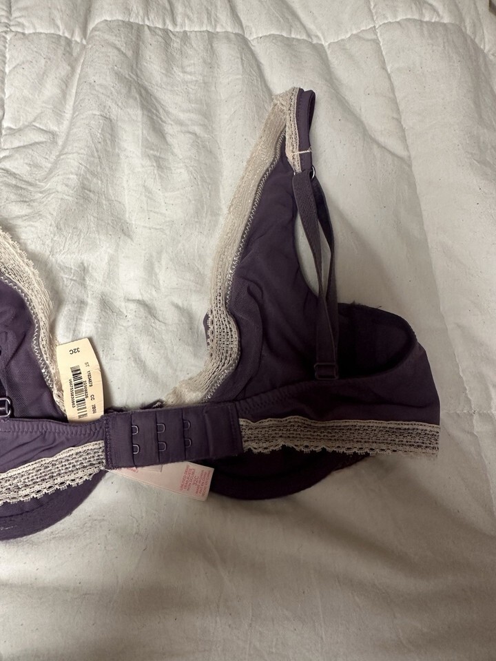 Victoria's Secret Purple White Lace Unlined Demi Plunge Bra 32C NEW!