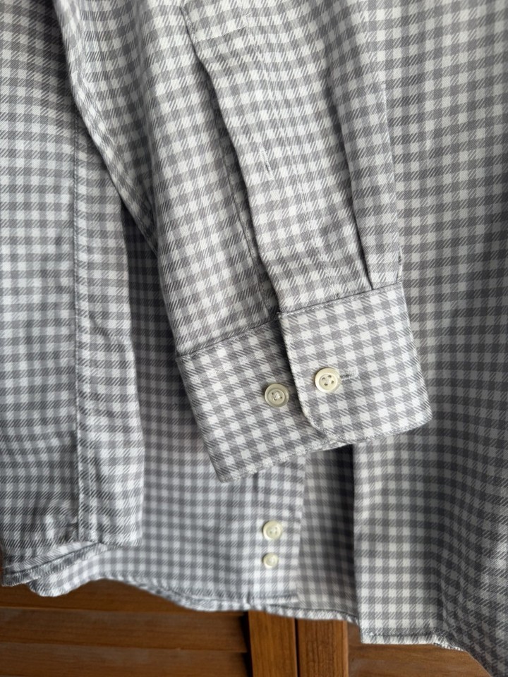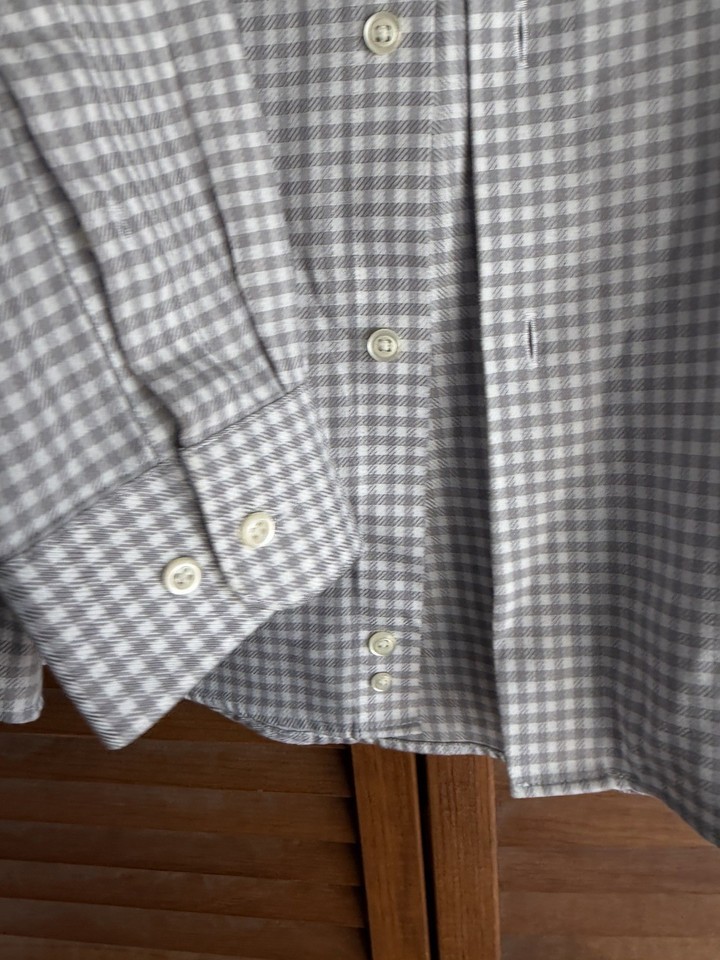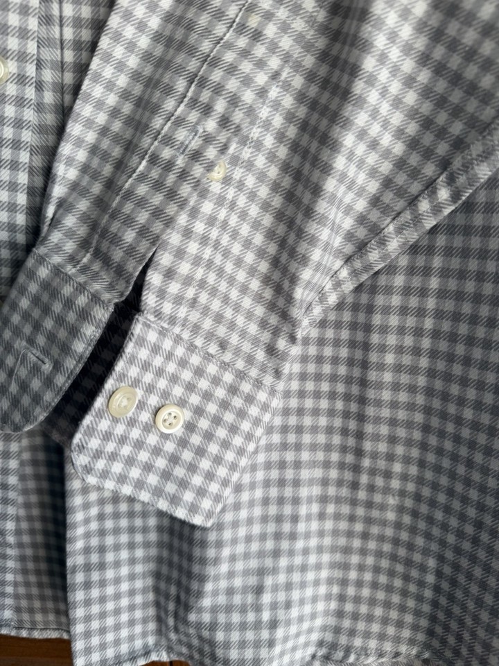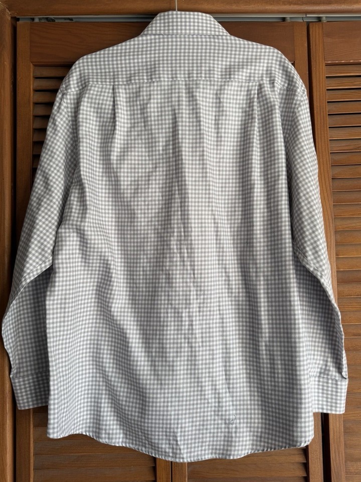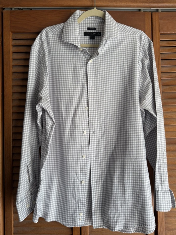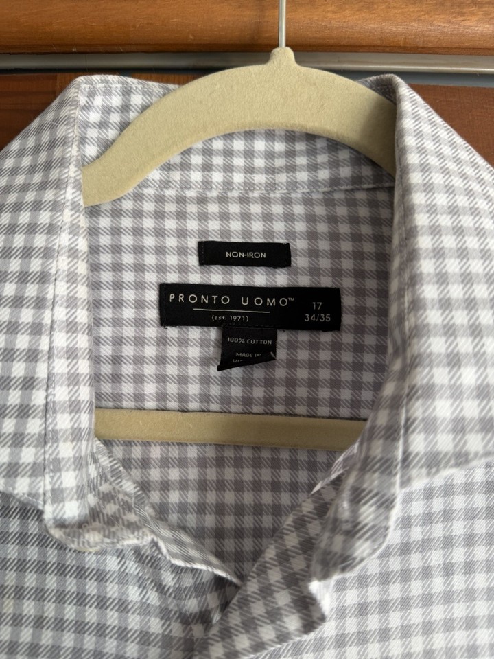Pronto Uomo Dress Shirt Men Size 17 (34/35) Gray Plaid Cotton Non Iron Preppy