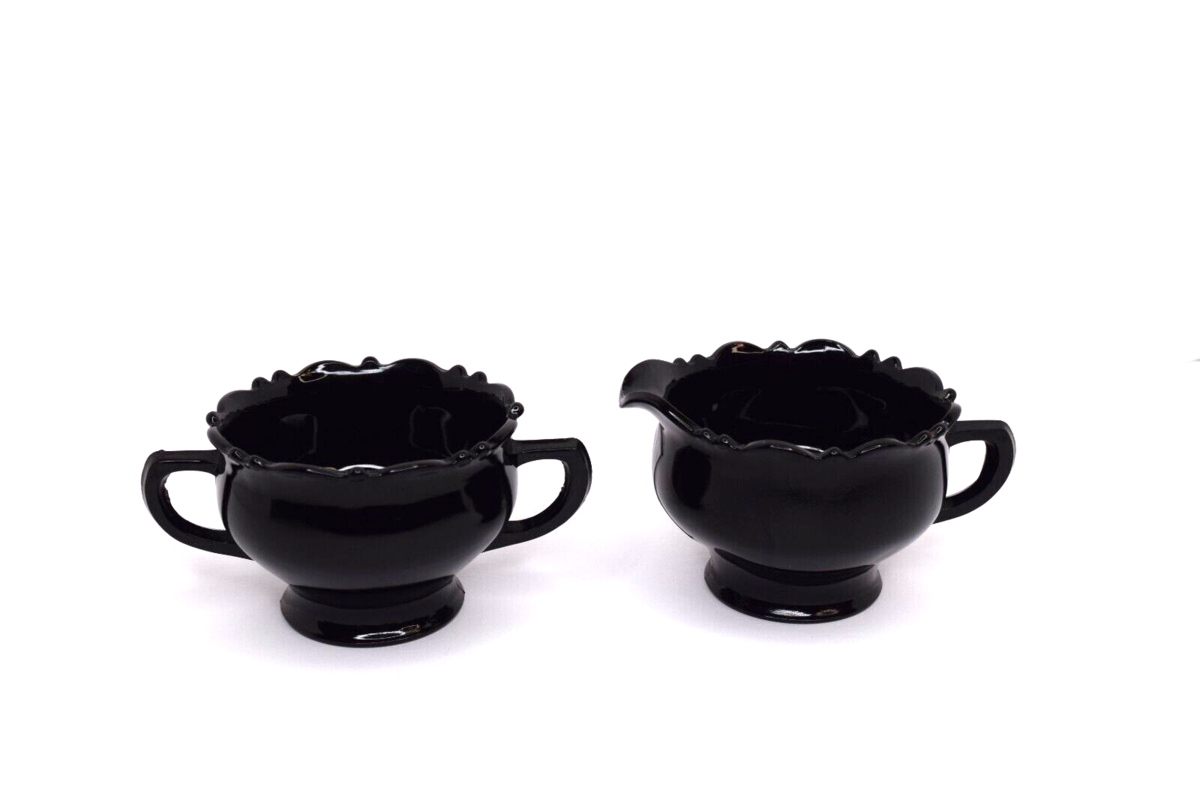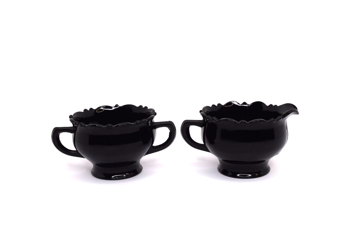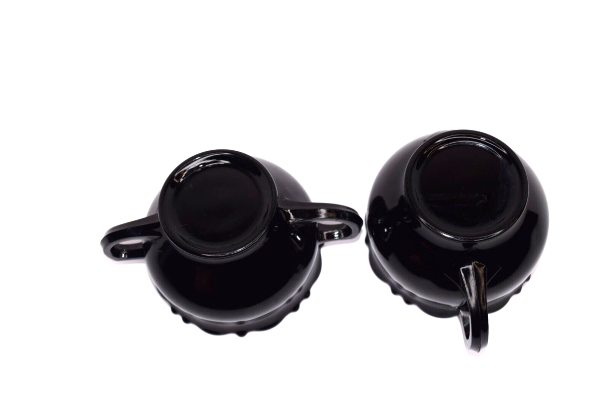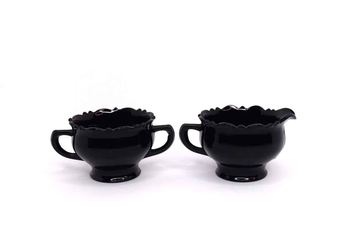 Vintage Mid Century L.E. Smith Black Amethyst Glass Creamer and Sugar Bowl. Pre-owned in good condition. No chips or cracks. Great color. See all photos for details and conditions. Will ship USPS Ground Advantage.