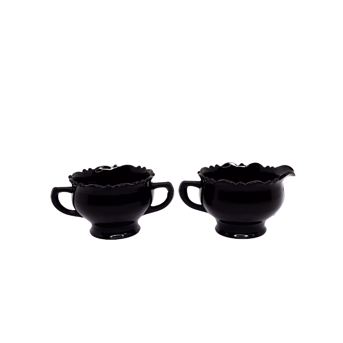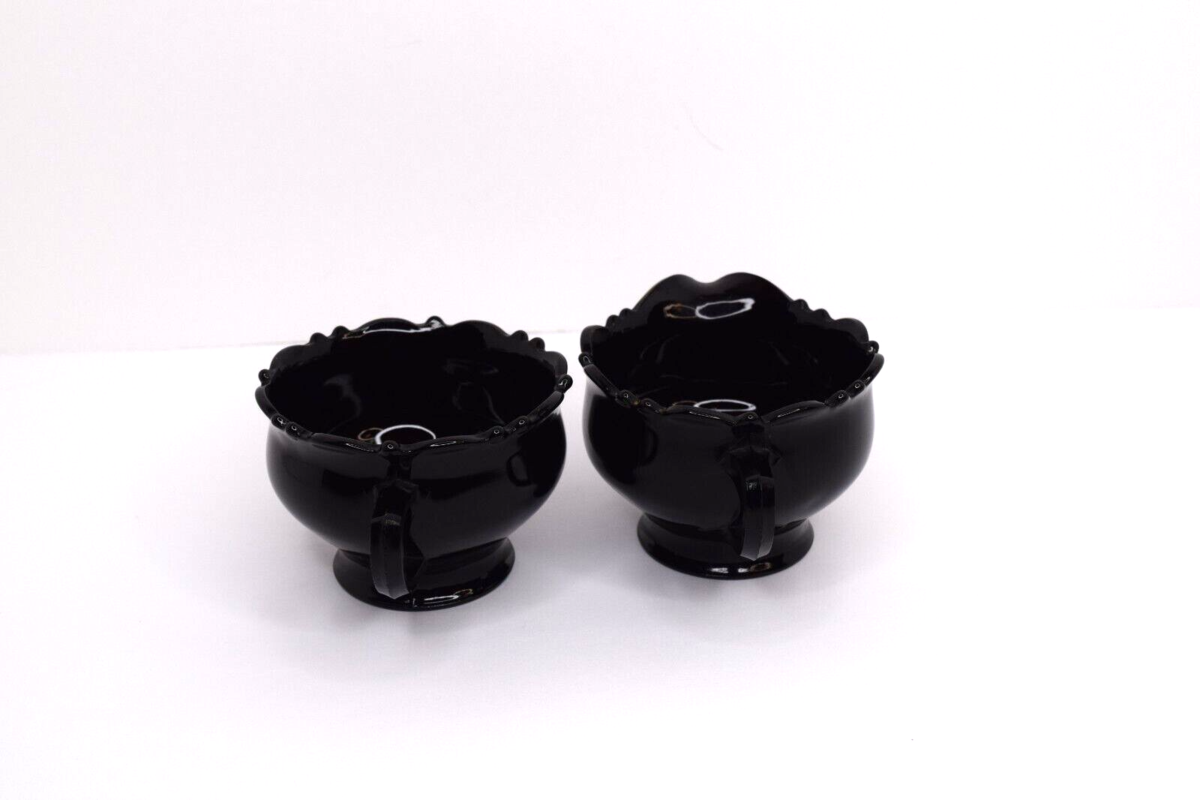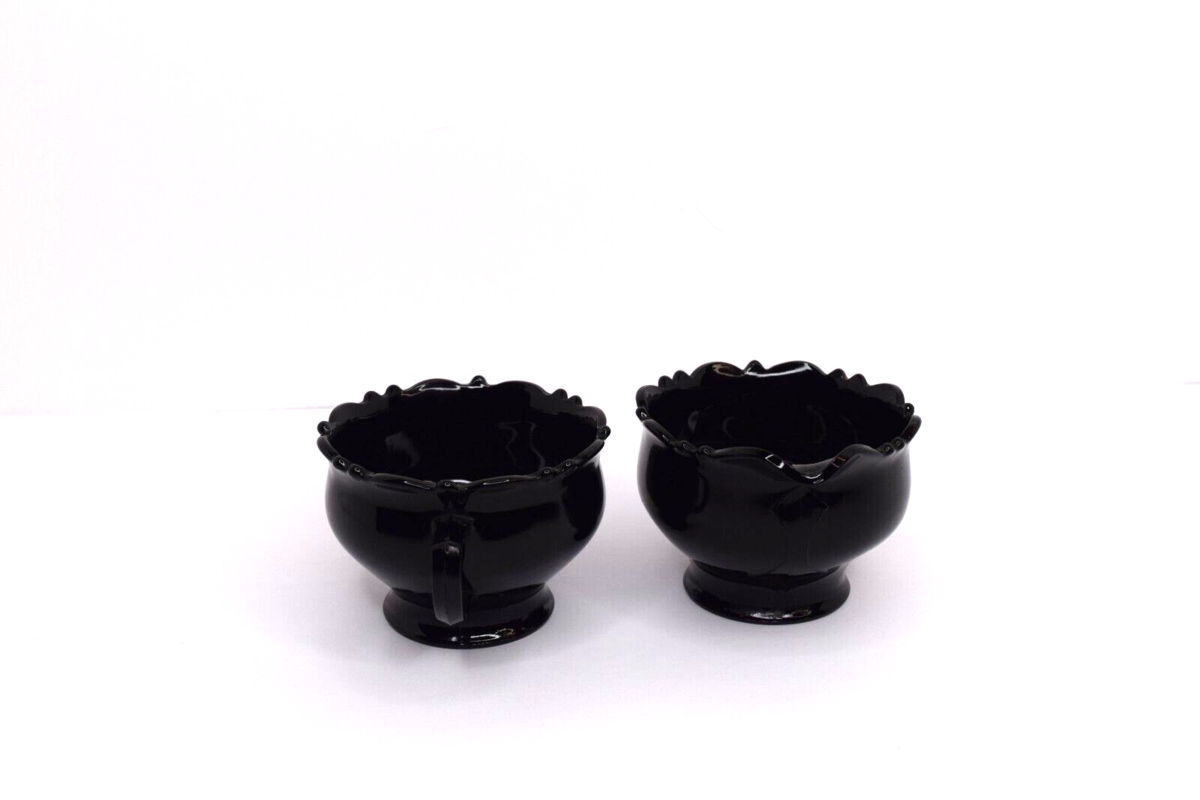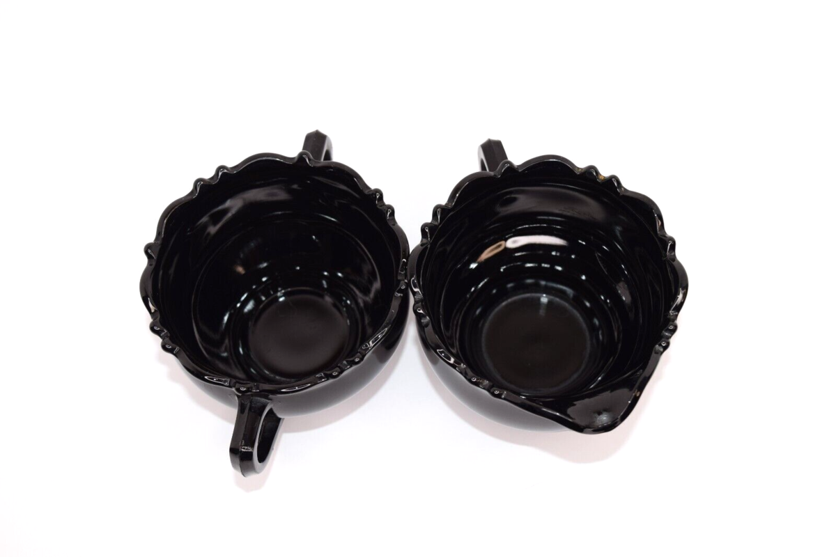 Vintage Mid Century L.E. Smith Black Amethyst Glass Creamer and Sugar Bowl. Pre-owned in good condition. No chips or cracks. Great color. See all photos for details and conditions. Will ship USPS Ground Advantage.