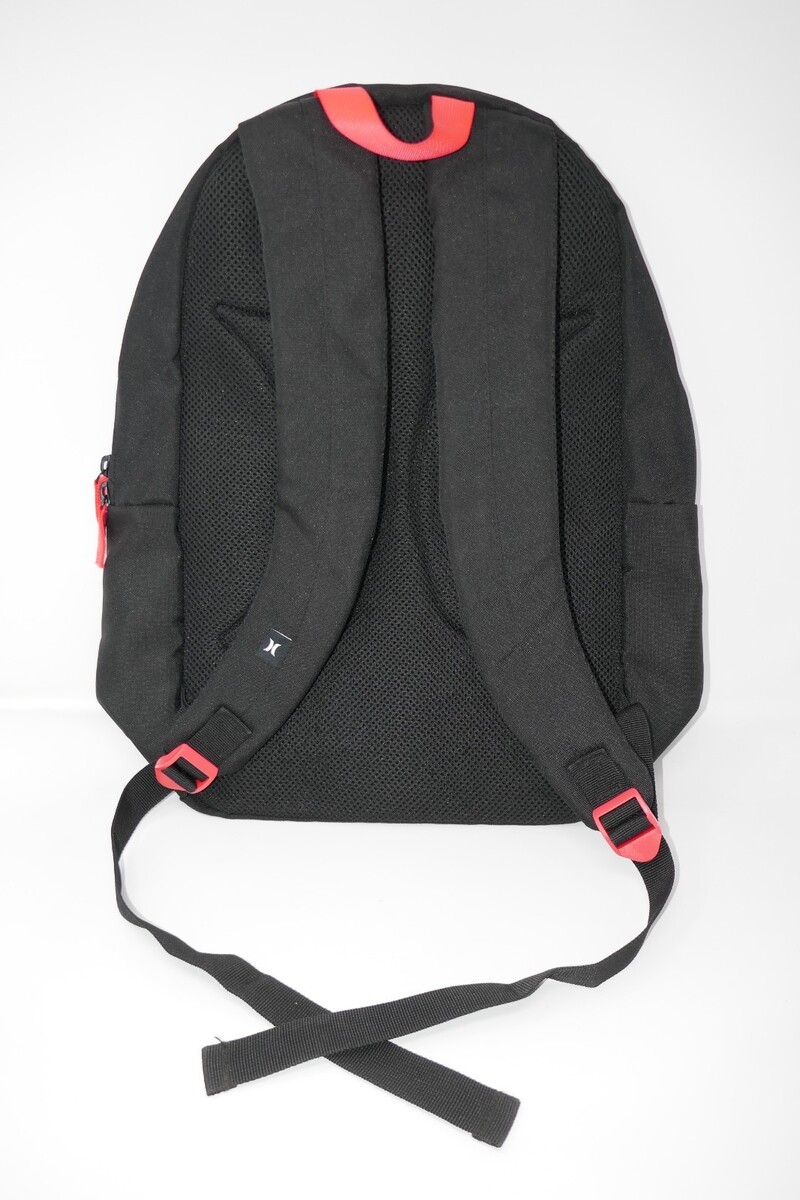 The Hurley Shark Bait Black Graphic Backpack is a medium-sized backpack perfect for travel or casual occasions. Made of 100% polyester with a fabric lining, this backpack features a solid black durable woven exterior with a shark bite logo graphic on the front. It has a zip closure, adjustable shoulder strap, and pockets for added convenience. One large front zip pocket for storing items like your phone, wallet, keys, chapter book and more. Mesh-face padded back panel and adjustable shoulder straps for all-day breathable comfort. The sleek design and durable material make it a practical and stylish choice for kids who love the ocean and want to show off their love for sharks.