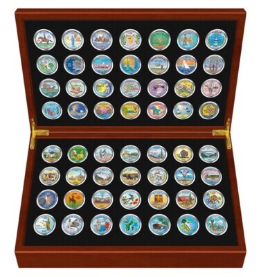 1999-2009 Complete COLORIZED State Quarters 56-Coin Set in Cherry Wood Style Box