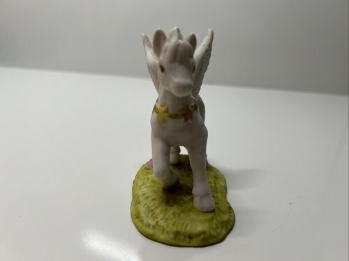 This vintage 1982 fantasy series Pegasus horse figurine by Wallace Berrie is a must-have for any unicorn or fantasy collector. With intricate details and a mystical aura, this piece is sure to add a touch of magic to any room. The Pegasus horse is a symbol of strength, power, and beauty in Greek mythology, making this figurine a perfect addition to any collection.