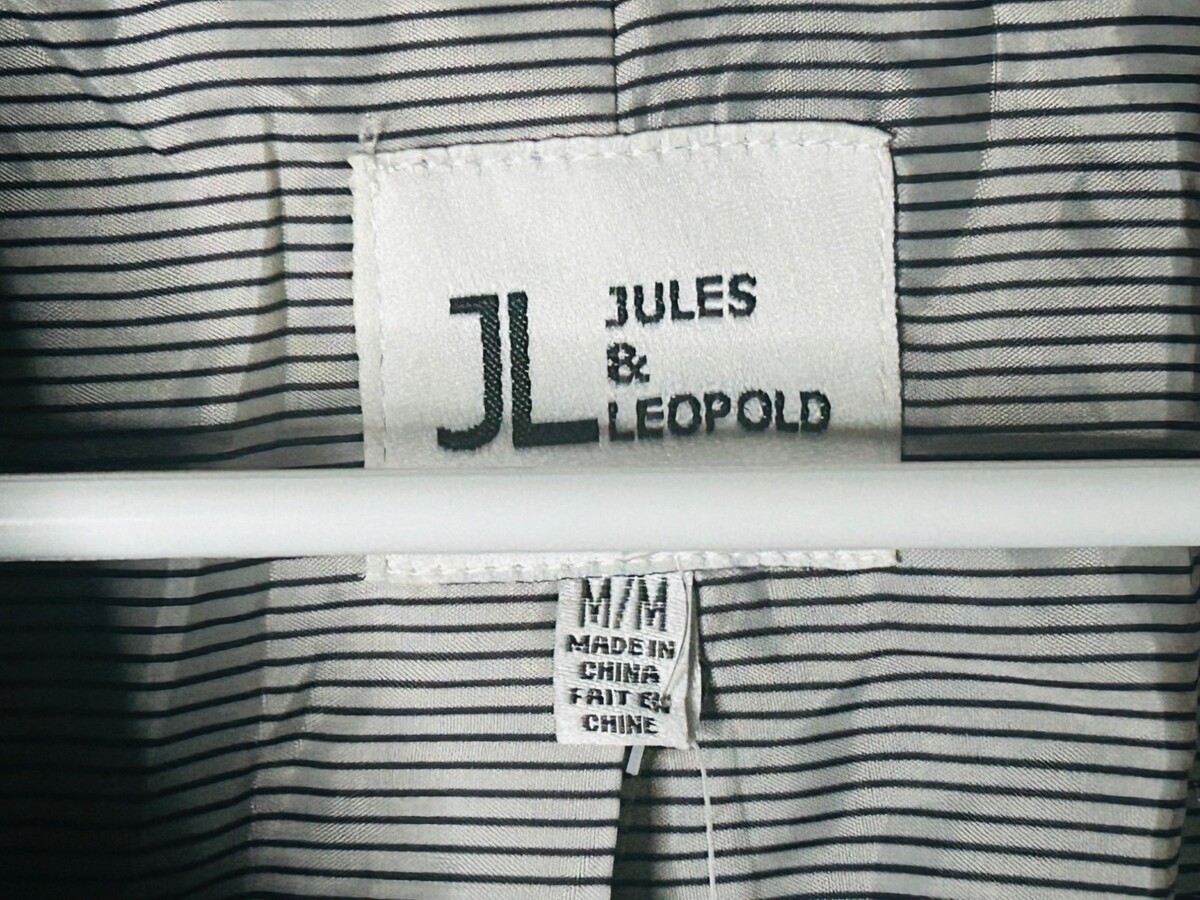 Elevate your wardrobe with this timeless olive green blazer by Jules Leopold. The tailored fit and single-button closure offer sophistication for office or formal settings.
