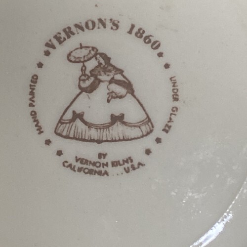 Vernon Kilns was founded in 1931 by Faye G. Bennison, who bought the former Poxon China plant in Vernon, California. Vernon Kilns produced a variety of products, including artware, figurines, giftware, and tableware. They collaborated with famous artists and designers, such as Don Blanding, Rockwell Kent, and Walt Disney. They also made specialty transfer print ware, such as the Vernon?s 1860 series1.