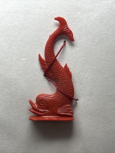 This rare 1948 Cracker Jack Prize Toy is a must-have for any collector of vintage nautical, animal, or mystical serpent.. The red-colored, mythical stand-up fish design is a classic addition to any collection. With its unique theme and brand, this item is perfect for display and storytelling.