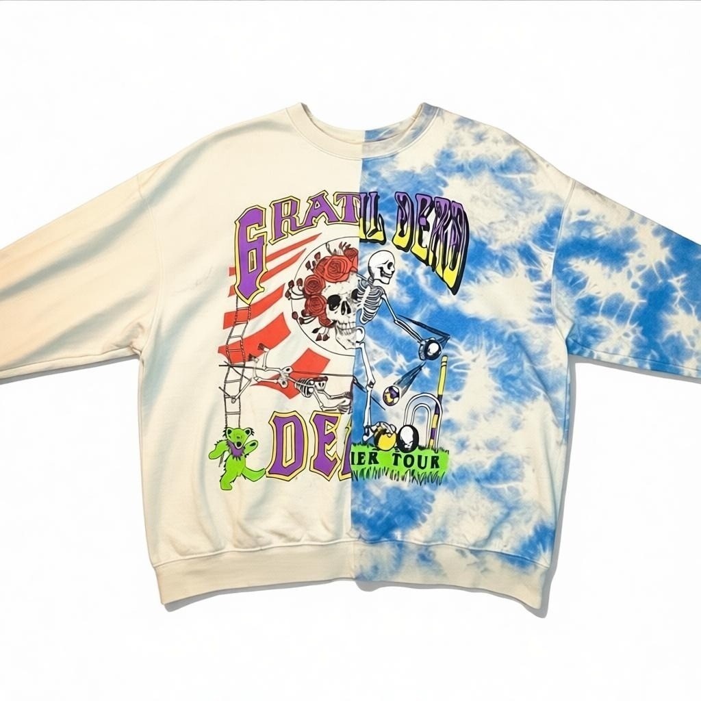 Step into a world of color and nostalgia with this Grateful Dead sweatshirt from H M's Divided collection. Combining tie-dye artistry with iconic skeleton and roses graphics, it weaves a tale of timeless music and vibrant culture. A cozy tribute for the spirited wanderer.