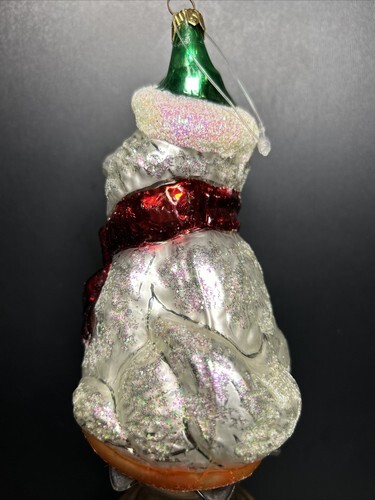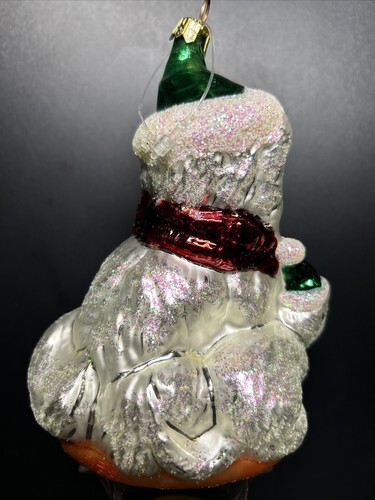 This Christopher Radko ornament is a must-have for any collector. The adorable design features two snowy kitty cats, perfect for adding a touch of whimsy to your holiday decor. Made in 1996, this retired piece is a rare find and sure to be a cherished addition to your collection. Ornament is approximately 6 inches tall.