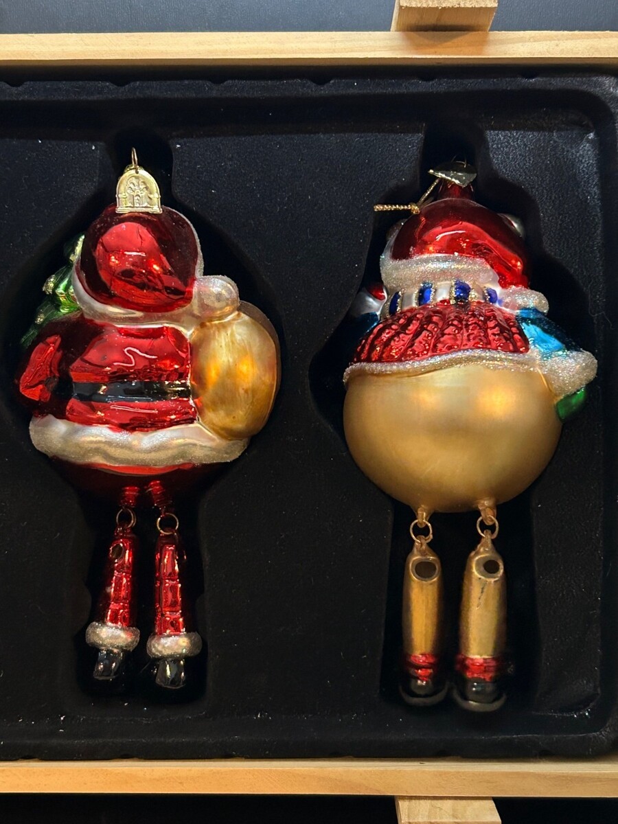 Other two ornaments are in great condition with just a little bit of paint missing from the backside of Santa. Otherwise the two ornaments are in good condition. They both measure approximately 7 inches tall.