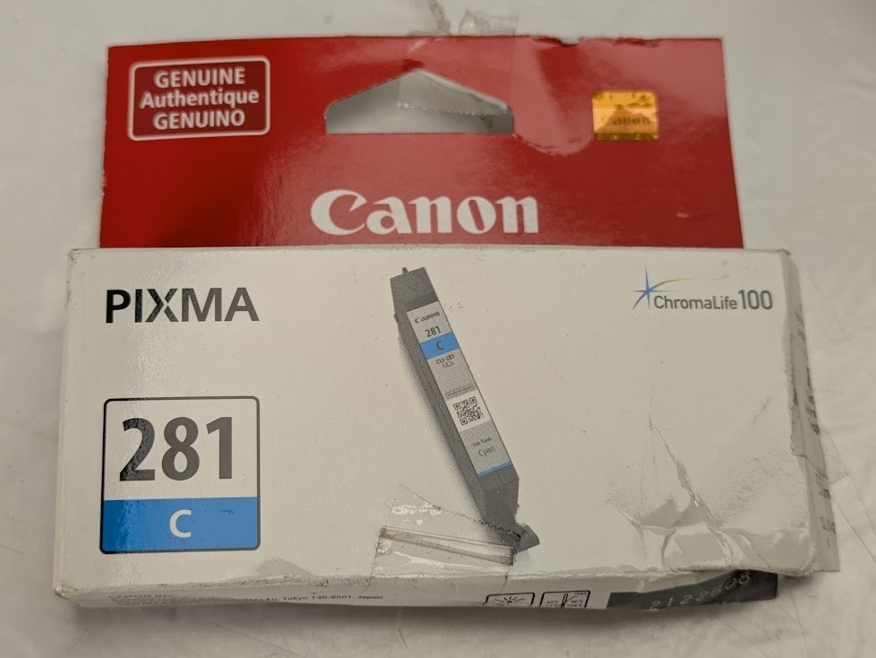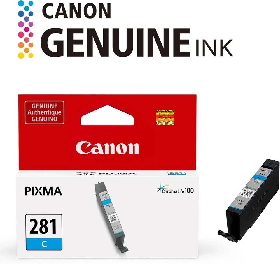 Genuine Canon Pixma 2122B08 (CLI-281) ChromaLIfe100 Ink Cyan Tank