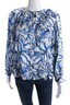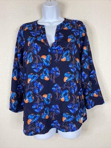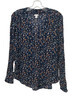 NWT Dragonfly Womens Floral Blouse Top Size XS Blue Plunge Neck Long Sleeve