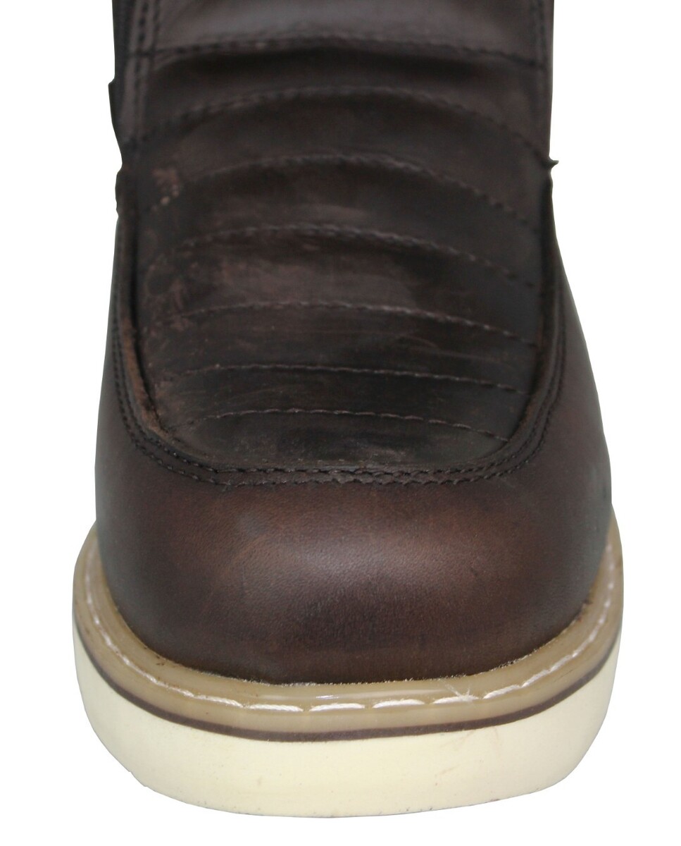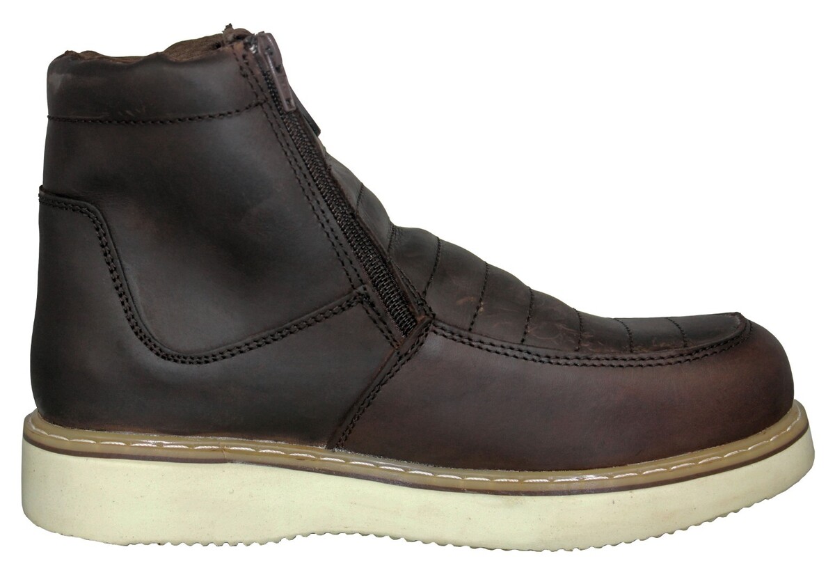 Mens Brown Work Boots Leather Slip Oil Resistant Zipper Wedge Sole Soft Toe