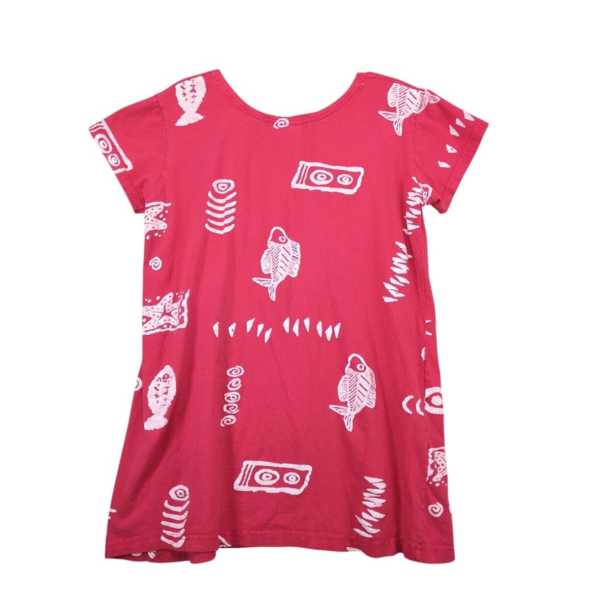 Magu Pink Tropical Fish Tribal A-Line T-Shirt Mini Dress Size M Cotton Beachy